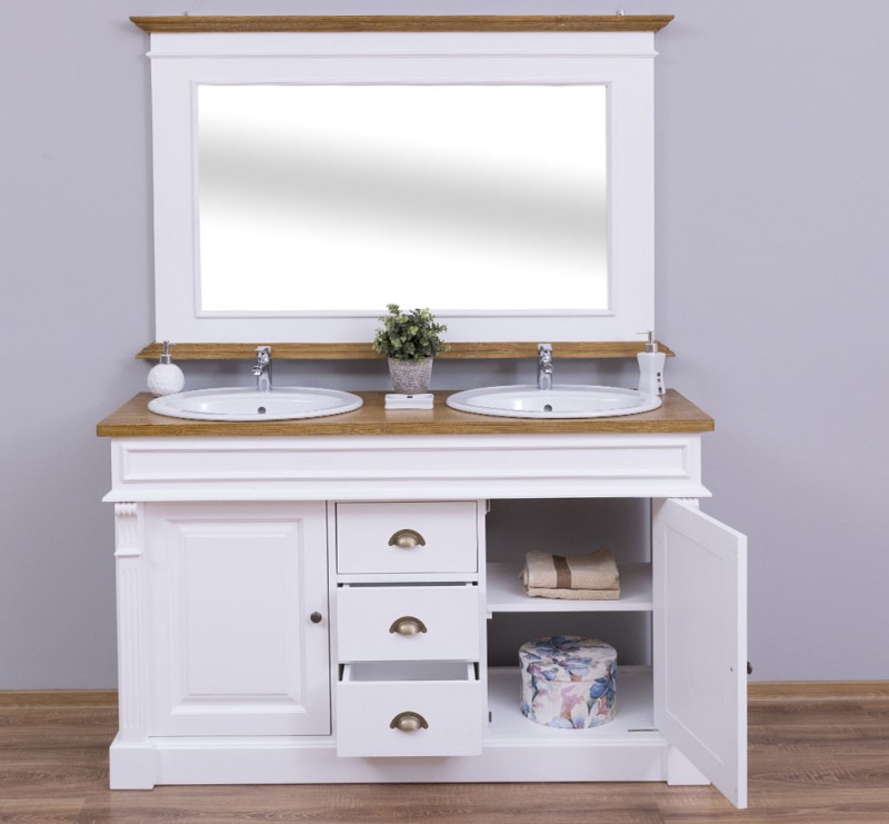 Produktinformationen "Massivholz Badezimmertisch für 2 Waschbecken - Badezimmer Möbel"