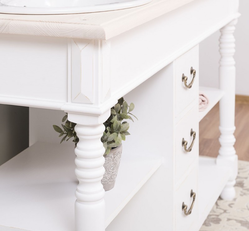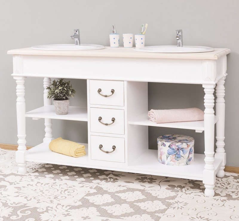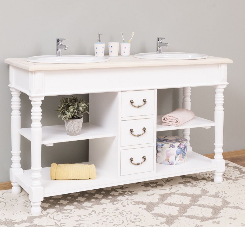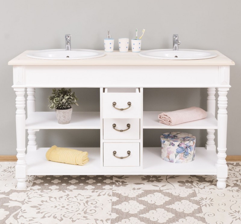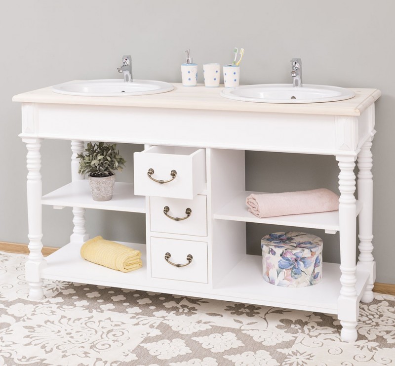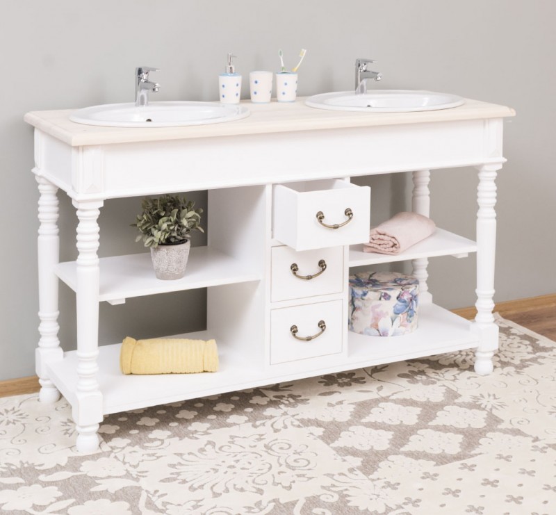 Produktinformationen "Badezimmerschrank für 2 Waschbecken mit 3 Schubladen und gedrechselten Beinen - Badmöbel"