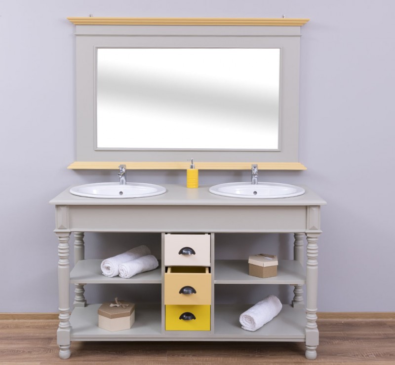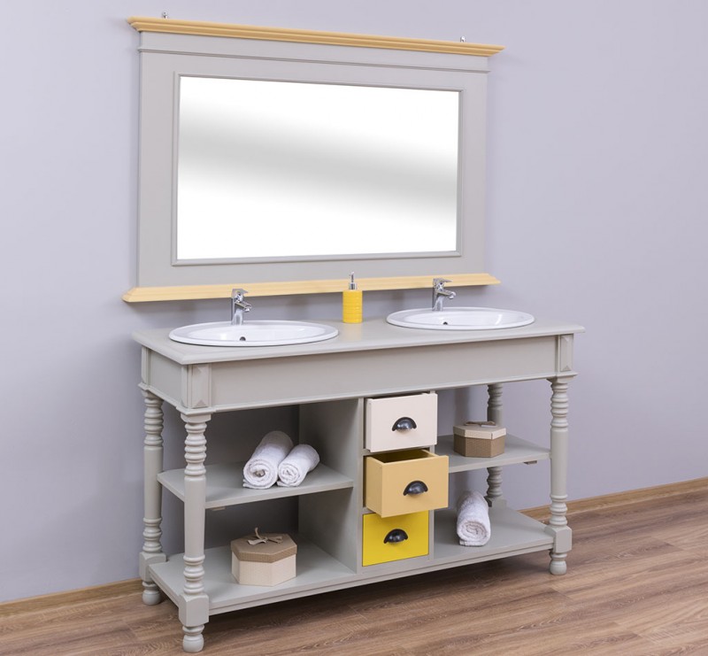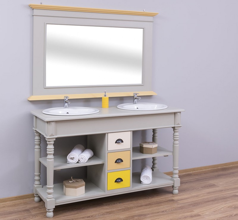 Produktinformationen "Badezimmerschrank für 2 Waschbecken mit 3 Schubladen und gedrechselten Beinen - Badmöbel"