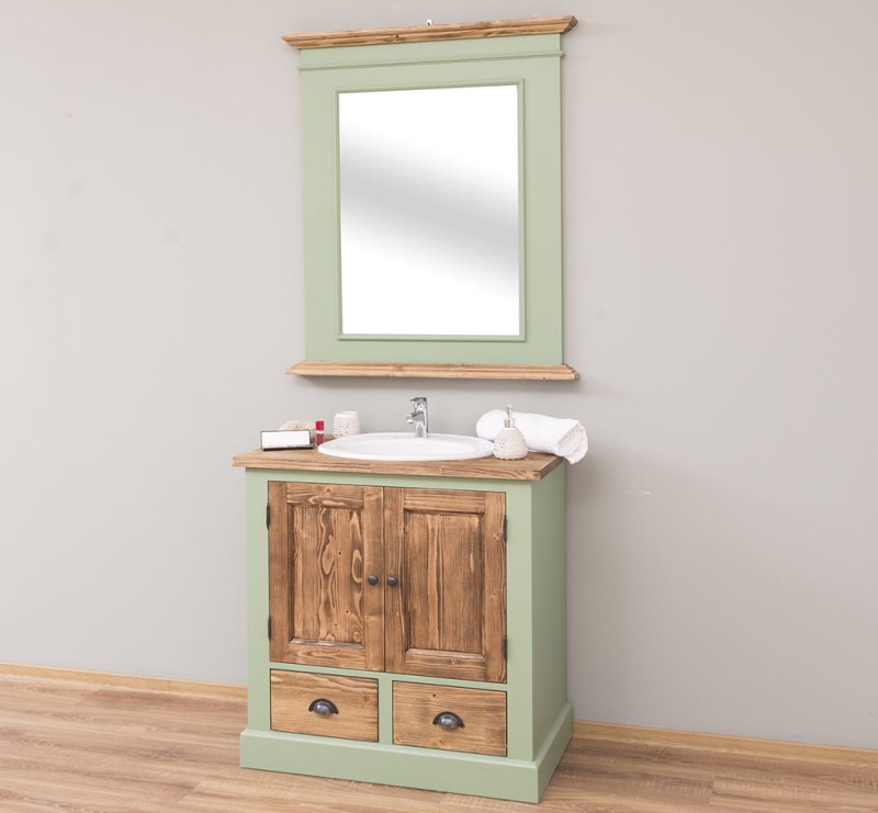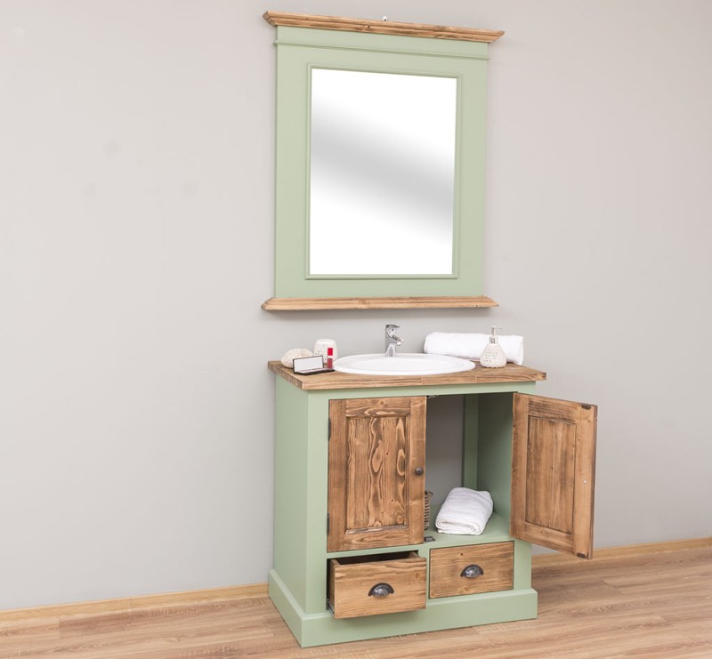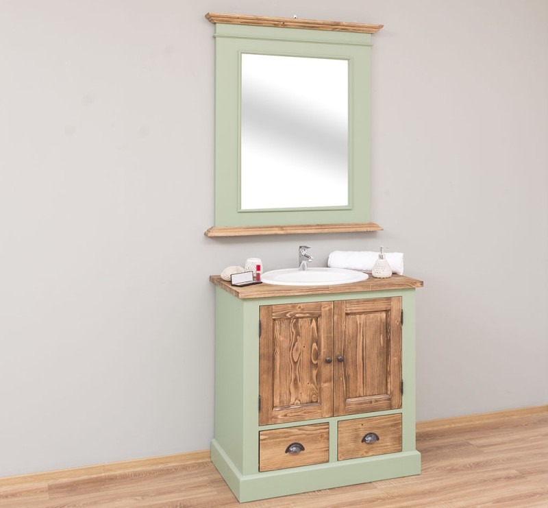 Unser Landhausstil Waschbeckenunterschrank mit zwei Türen und zwei geräumigen Schubladen ist die ideale Ergänzung für Ihr Badezimmer. Dieses Möbelstück vereint praktische Funktionalität mit einem ansprechenden Design und wird aus hochwertigem Massivholz gefertigt. Eleganz und Nützlichkeit in einem: Gestalten Sie Ihr Badezimmer mit einem Möbelstück, das sowohl in Bezug auf sein Design als auch auf seine Funktionalität überzeugt. Vielfältige Gestaltungsmöglichkeiten: Wählen Sie zwischen verschiedenen Tischplatten, darunter massives Kiefernholz, Eichenholz oder eine verzinkte Tischplatte, um die Oberfläche noch widerstandsfähiger zu gestalten. Beachten Sie, dass das Waschbecken nicht im Lieferumfang enthalten ist, jedoch passende Optionen auf unserer Website erhältlich sind, um Ihr Badezimmer perfekt abzustimmen. Großzügiger Stauraum: Unser Waschbeckenunterschrank bietet ausreichend Platz hinter seinen zwei Türen und zusätzlich in den beiden Schubladen. Pflegehinweise: Die Reinigung ist unkompliziert - verwenden Sie einfach ein leicht feuchtes Tuch, um Staub und Schmutz zu entfernen. Aufgrund der spezifischen Eigenschaften von Massivholz empfehlen wir, den Schrank nach Kontakt mit Wasser mit einem trockenen Tuch abzuwischen und trocken zu halten. Verleihen Sie Ihrem Badezimmer mit unserem hochwertigen Waschbeckenunterschrank im Landhausstil ein stilvolles und funktionales Upgrade. Bestellen Sie jetzt und verwandeln Sie Ihr Badezimmer in einen Ort der Exzellenz und Raffinesse! Abmessungen: H: 90 cm, B: 90 cm, T: 51 cm Außenfarbe - frei wählbar Innenfarbe - frei wählbar Massivholz Möbel Landhausstil Tischplatte 100% Kiefernholz Korpus 100% Kieferholz verschiedene Farben wählbar Beschläge/Griffe wählbar Oberflächen und Farben sind frei wählbar. 36 Farben und 8 Oberflächen (lackiert/gewachst/natur usw.) - Andere Abmessungen und Sonderanfertigungen sind möglich. Bitte Fragen Sie uns.