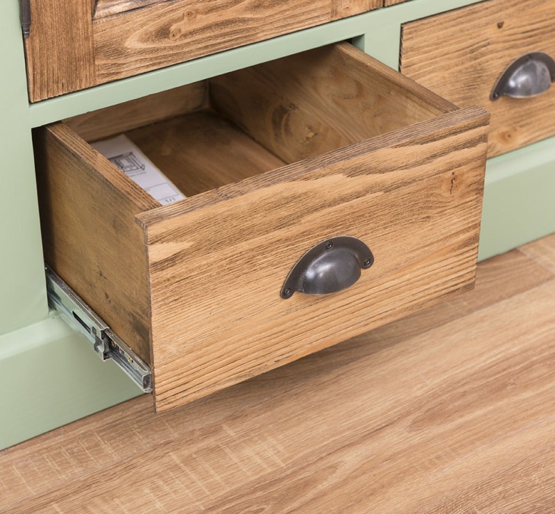 Pflegehinweise: Die Reinigung ist unkompliziert - verwenden Sie einfach ein leicht feuchtes Tuch, um Staub und Schmutz zu entfernen. Aufgrund der spezifischen Eigenschaften von Massivholz empfehlen wir, den Schrank nach Kontakt mit Wasser mit einem trockenen Tuch abzuwischen und trocken zu halten.