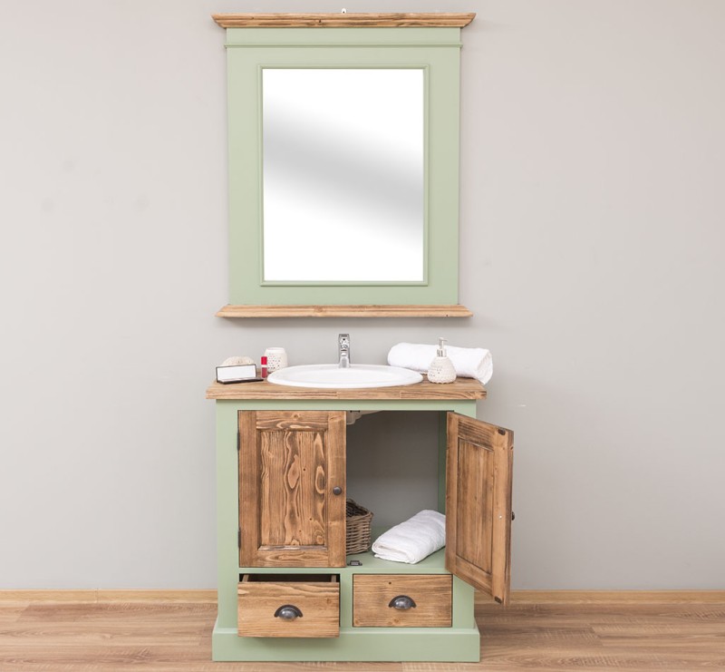 Unser Landhausstil Waschbeckenunterschrank mit zwei Türen und zwei geräumigen Schubladen ist die ideale Ergänzung für Ihr Badezimmer. Dieses Möbelstück vereint praktische Funktionalität mit einem ansprechenden Design und wird aus hochwertigem Massivholz gefertigt.