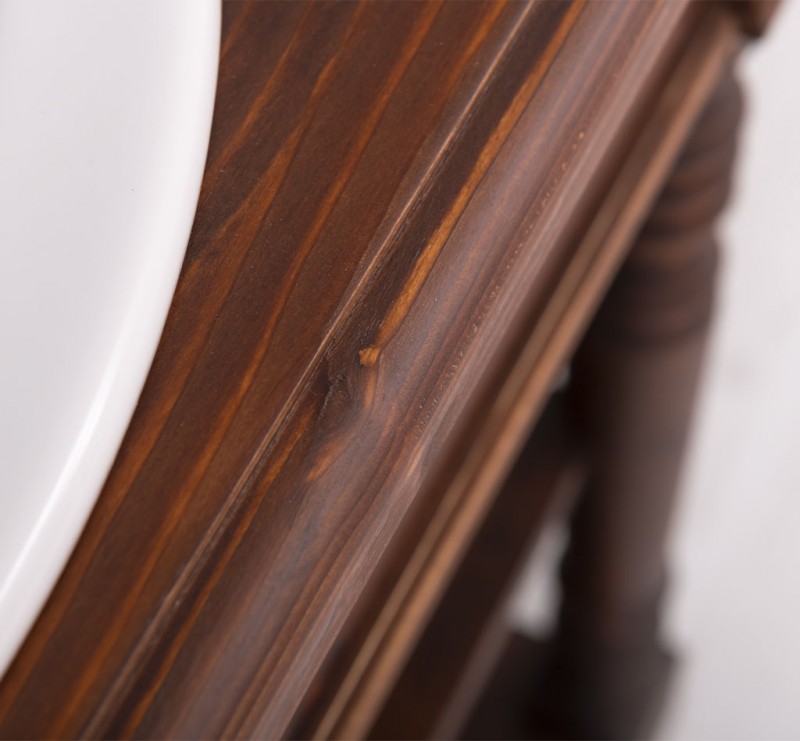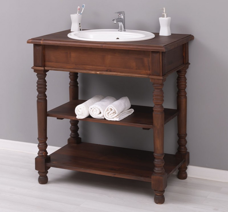 Unser Badezimmerschrank mit gedrechselten Beinen bietet klassische Eleganz und ist in verschiedenen Größen erhältlich. Wählen Sie zwischen Tischplatten aus massivem Kiefernholz, massivem Eichenholz oder verzinktem Metall.