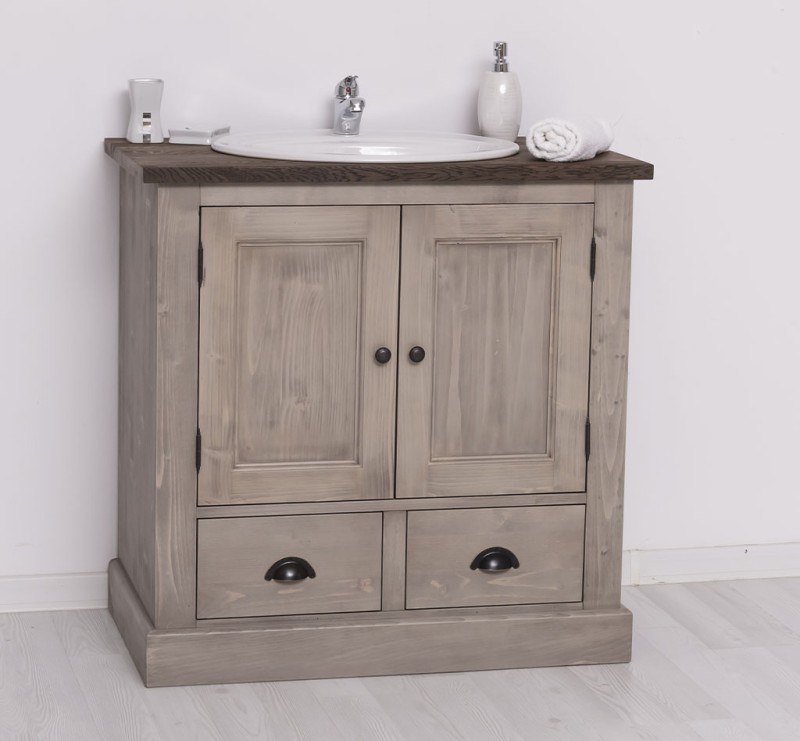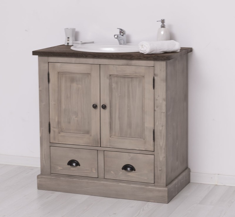 Unser Landhausstil Waschbeckenunterschrank mit zwei Türen und zwei geräumigen Schubladen ist die ideale Ergänzung für Ihr Badezimmer. Dieses Möbelstück vereint praktische Funktionalität mit einem ansprechenden Design und wird aus hochwertigem Massivholz gefertigt. Eleganz und Nützlichkeit in einem: Gestalten Sie Ihr Badezimmer mit einem Möbelstück, das sowohl in Bezug auf sein Design als auch auf seine Funktionalität überzeugt. Vielfältige Gestaltungsmöglichkeiten: Wählen Sie zwischen verschiedenen Tischplatten, darunter massives Kiefernholz, Eichenholz oder eine verzinkte Tischplatte, um die Oberfläche noch widerstandsfähiger zu gestalten. Beachten Sie, dass das Waschbecken nicht im Lieferumfang enthalten ist, jedoch passende Optionen auf unserer Website erhältlich sind, um Ihr Badezimmer perfekt abzustimmen. Großzügiger Stauraum: Unser Waschbeckenunterschrank bietet ausreichend Platz hinter seinen zwei Türen und zusätzlich in den beiden Schubladen. Pflegehinweise: Die Reinigung ist unkompliziert - verwenden Sie einfach ein leicht feuchtes Tuch, um Staub und Schmutz zu entfernen. Aufgrund der spezifischen Eigenschaften von Massivholz empfehlen wir, den Schrank nach Kontakt mit Wasser mit einem trockenen Tuch abzuwischen und trocken zu halten. Verleihen Sie Ihrem Badezimmer mit unserem hochwertigen Waschbeckenunterschrank im Landhausstil ein stilvolles und funktionales Upgrade. Bestellen Sie jetzt und verwandeln Sie Ihr Badezimmer in einen Ort der Exzellenz und Raffinesse! Abmessungen: H: 90 cm, B: 90 cm, T: 51 cm Außenfarbe - frei wählbar Innenfarbe - frei wählbar Massivholz Möbel Landhausstil Tischplatte 100% Kiefernholz Korpus 100% Kieferholz verschiedene Farben wählbar Beschläge/Griffe wählbar Oberflächen und Farben sind frei wählbar. 36 Farben und 8 Oberflächen (lackiert/gewachst/natur usw.) - Andere Abmessungen und Sonderanfertigungen sind möglich. Bitte Fragen Sie uns.