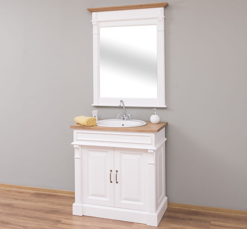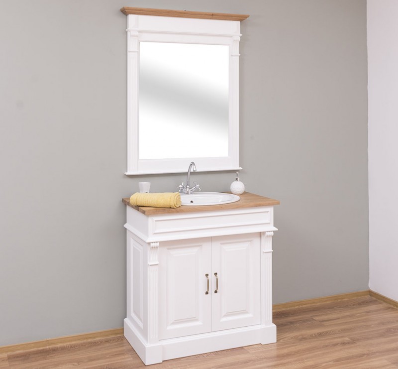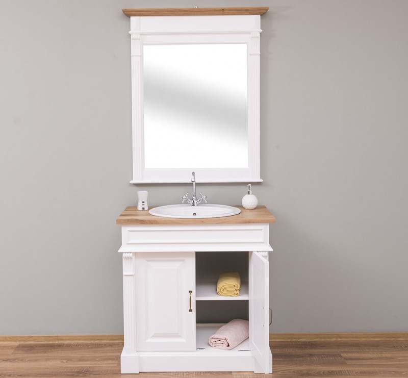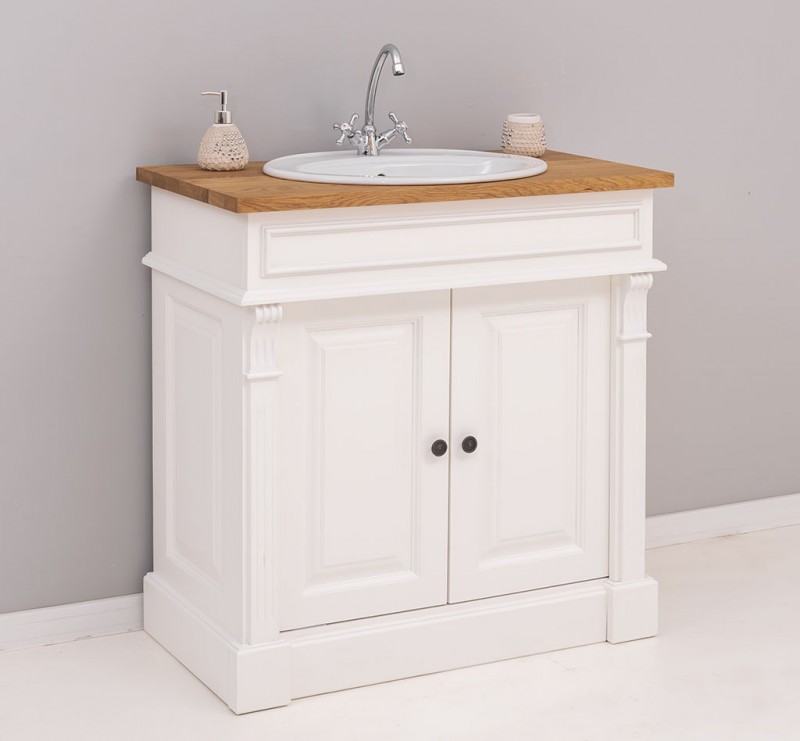 Unser Landhausstil Waschbeckenunterschrank mit zwei Türen und zwei geräumigen Schubladen ist die ideale Ergänzung für Ihr Badezimmer. Dieses Möbelstück vereint praktische Funktionalität mit einem ansprechenden Design und wird aus hochwertigem Massivholz gefertigt. Eleganz und Nützlichkeit in einem: Gestalten Sie Ihr Badezimmer mit einem Möbelstück, das sowohl in Bezug auf sein Design als auch auf seine Funktionalität überzeugt. Vielfältige Gestaltungsmöglichkeiten: Wählen Sie zwischen verschiedenen Tischplatten, darunter massives Kiefernholz, Eichenholz oder eine verzinkte Tischplatte, um die Oberfläche noch widerstandsfähiger zu gestalten. Beachten Sie, dass das Waschbecken nicht im Lieferumfang enthalten ist, jedoch passende Optionen auf unserer Website erhältlich sind, um Ihr Badezimmer perfekt abzustimmen. Großzügiger Stauraum: Unser Waschbeckenunterschrank bietet ausreichend Platz hinter seinen zwei Türen und zusätzlich in den beiden Schubladen. Pflegehinweise: Die Reinigung ist unkompliziert - verwenden Sie einfach ein leicht feuchtes Tuch, um Staub und Schmutz zu entfernen. Aufgrund der spezifischen Eigenschaften von Massivholz empfehlen wir, den Schrank nach Kontakt mit Wasser mit einem trockenen Tuch abzuwischen und trocken zu halten. Verleihen Sie Ihrem Badezimmer mit unserem hochwertigen Waschbeckenunterschrank im Landhausstil ein stilvolles und funktionales Upgrade. Bestellen Sie jetzt und verwandeln Sie Ihr Badezimmer in einen Ort der Exzellenz und Raffinesse! Abmessungen: H: 90 cm, B: 90 cm, T: 51 cm Außenfarbe - frei wählbar Innenfarbe - frei wählbar Massivholz Möbel Landhausstil Tischplatte 100% Eichenholz Korpus 100% Kieferholz verschiedene Farben wählbar Beschläge/Griffe wählbar Oberflächen und Farben sind frei wählbar. 36 Farben und 8 Oberflächen (lackiert/gewachst/natur usw.) - Andere Abmessungen und Sonderanfertigungen sind möglich. Bitte Fragen Sie uns.