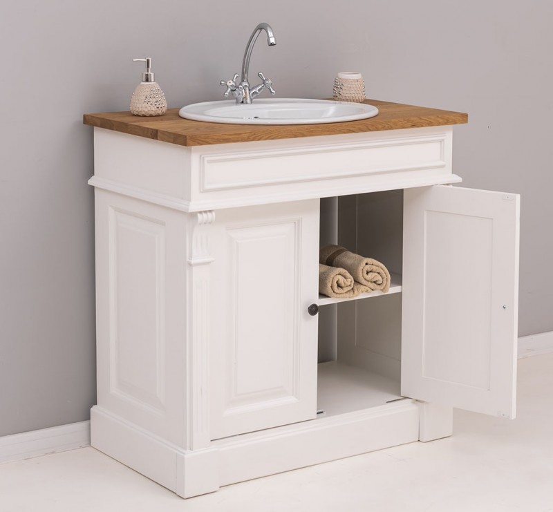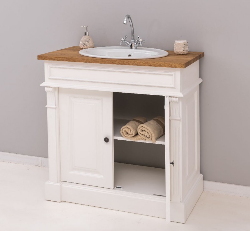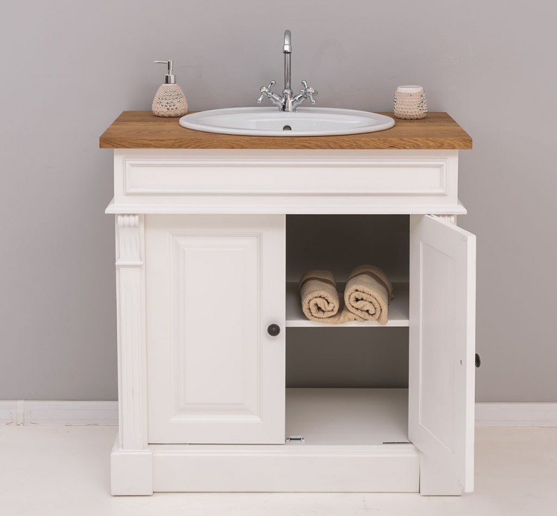 Verleihen Sie Ihrem Badezimmer mit unserem hochwertigen Waschbeckenunterschrank im Landhausstil ein stilvolles und funktionales Upgrade.