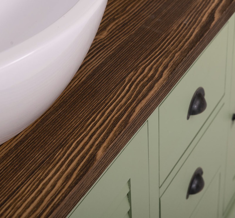 Unser Landhausstil Waschbeckenunterschrank mit zwei Türen ist die ideale Ergänzung für Ihr Badezimmer. Dieses Möbelstück vereint praktische Funktionalität mit einem ansprechenden Design und wird aus hochwertigem Massivholz gefertigt. Eleganz und Nützlichkeit in einem: Gestalten Sie Ihr Badezimmer mit einem Möbelstück, das sowohl in Bezug auf sein Design als auch auf seine Funktionalität überzeugt. Vielfältige Gestaltungsmöglichkeiten: Wählen Sie zwischen verschiedenen Tischplatten, darunter massives Kiefernholz, Eichenholz oder eine verzinkte Tischplatte, um die Oberfläche noch widerstandsfähiger zu gestalten. Beachten Sie, dass das Waschbecken nicht im Lieferumfang enthalten ist, jedoch passende Optionen auf unserer Website erhältlich sind, um Ihr Badezimmer perfekt abzustimmen. Großzügiger Stauraum: Unser Waschbeckenunterschrank bietet ausreichend Platz hinter seinen zwei Türen. Pflegehinweise: Die Reinigung ist unkompliziert - verwenden Sie einfach ein leicht feuchtes Tuch, um Staub und Schmutz zu entfernen. Aufgrund der spezifischen Eigenschaften von Massivholz empfehlen wir, den Schrank nach Kontakt mit Wasser mit einem trockenen Tuch abzuwischen und trocken zu halten. Verleihen Sie Ihrem Badezimmer mit unserem hochwertigen Waschbeckenunterschrank im Landhausstil ein stilvolles und funktionales Upgrade. Bestellen Sie jetzt und verwandeln Sie Ihr Badezimmer in einen Ort der Exzellenz und Raffinesse! Abmessungen: H: 91 cm, B: 90 cm, T: 51 cm Außenfarbe - frei wählbar Innenfarbe - frei wählbar Massivholz Möbel Landhausstil Tischplatte 100% Eichenholz Korpus 100% Kiefernholz verschiedene Farben wählbar Beschläge/Griffe wählbar Oberflächen und Farben sind frei wählbar. 36 Farben und 8 Oberflächen (lackiert/gewachst/natur usw.) - Andere Abmessungen und Sonderanfertigungen sind möglich. Bitte Fragen Sie uns.