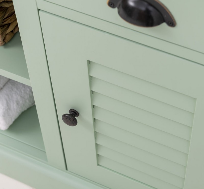 Großzügiger Stauraum: Unser Waschbeckenunterschrank bietet ausreichend Platz hinter zwei Lamellentür, zwei Schubladen und in den zwei Fächern.