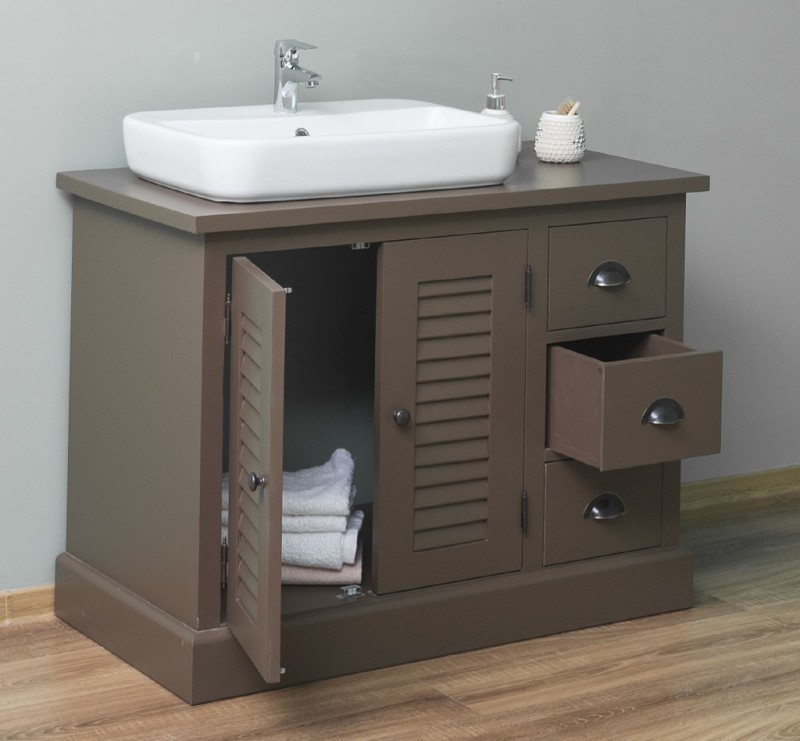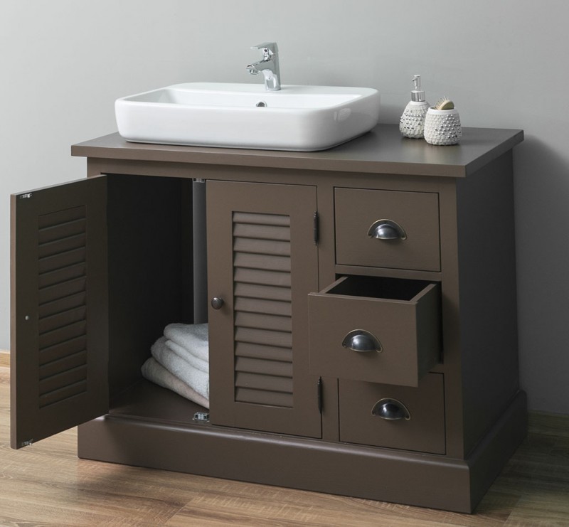 Produktinformationen "Badezimmerschrank für 1 Waschbecken mit 2 Lamellentüren - Badmöbel"