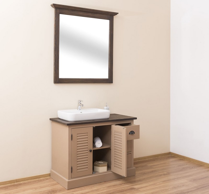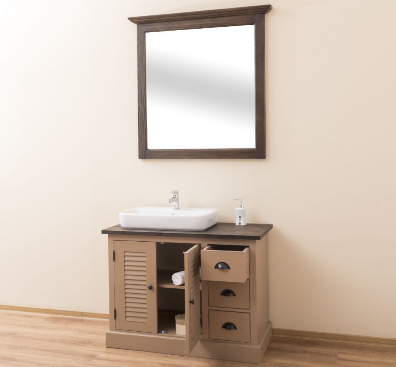 Unser Landhausstil Waschbeckenunterschrank mit zwei Türen und zwei geräumigen Schubladen ist die ideale Ergänzung für Ihr Badezimmer. Dieses Möbelstück vereint praktische Funktionalität mit einem ansprechenden Design und wird aus hochwertigem Massivholz gefertigt. Eleganz und Nützlichkeit in einem: Gestalten Sie Ihr Badezimmer mit einem Möbelstück, das sowohl in Bezug auf sein Design als auch auf seine Funktionalität überzeugt. Vielfältige Gestaltungsmöglichkeiten: Wählen Sie zwischen verschiedenen Tischplatten, darunter massives Kiefernholz, Eichenholz oder eine verzinkte Tischplatte, um die Oberfläche noch widerstandsfähiger zu gestalten. Beachten Sie, dass das Waschbecken nicht im Lieferumfang enthalten ist, jedoch passende Optionen auf unserer Website erhältlich sind, um Ihr Badezimmer perfekt abzustimmen. Großzügiger Stauraum: Unser Waschbeckenunterschrank bietet ausreichend Platz hinter seinen zwei Türen und zusätzlich in den beiden Schubladen. Pflegehinweise: Die Reinigung ist unkompliziert - verwenden Sie einfach ein leicht feuchtes Tuch, um Staub und Schmutz zu entfernen. Aufgrund der spezifischen Eigenschaften von Massivholz empfehlen wir, den Schrank nach Kontakt mit Wasser mit einem trockenen Tuch abzuwischen und trocken zu halten. Verleihen Sie Ihrem Badezimmer mit unserem hochwertigen Waschbeckenunterschrank im Landhausstil ein stilvolles und funktionales Upgrade. Bestellen Sie jetzt und verwandeln Sie Ihr Badezimmer in einen Ort der Exzellenz und Raffinesse! Abmessungen: H: 90 cm, B: 90 cm, T: 51 cm Außenfarbe - frei wählbar Innenfarbe - frei wählbar Massivholz Möbel Landhausstil Tischplatte 100% Kiefernholz Korpus 100% Kieferholz verschiedene Farben wählbar Beschläge/Griffe wählbar Oberflächen und Farben sind frei wählbar. 36 Farben und 8 Oberflächen (lackiert/gewachst/natur usw.) - Andere Abmessungen und Sonderanfertigungen sind möglich. Bitte Fragen Sie uns.