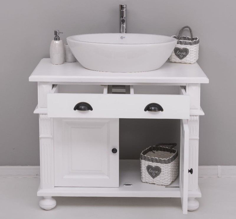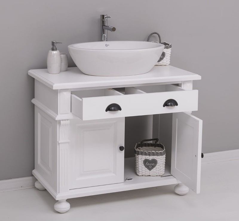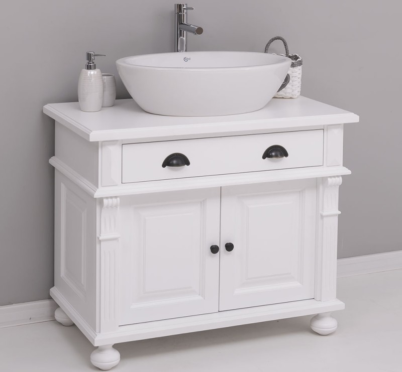 Produktinformationen "Badezimmerschrank 90 cm mit verzierten Füssen für 1 Waschbecken - Badezimmermöbel"