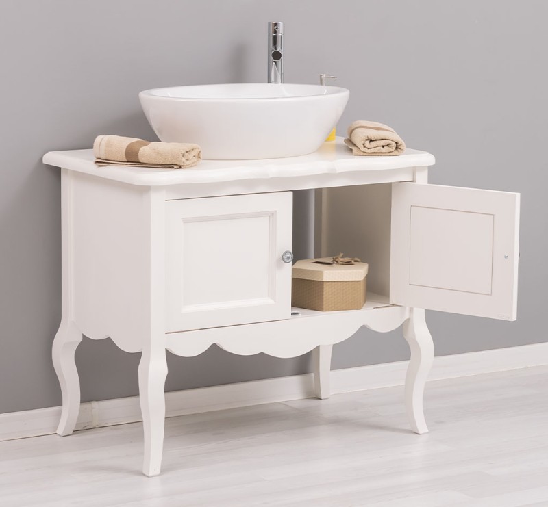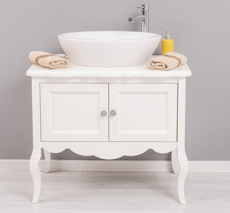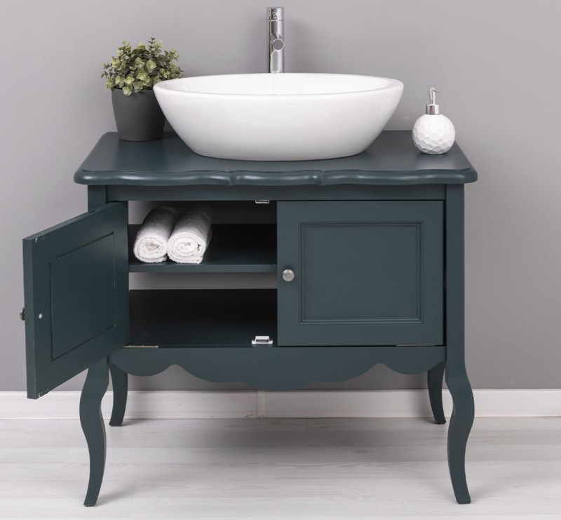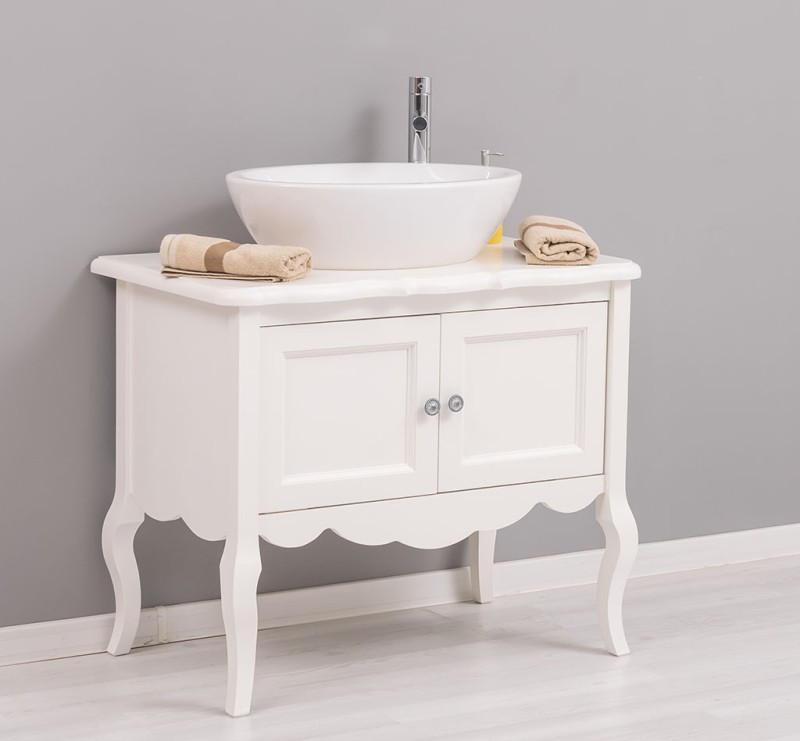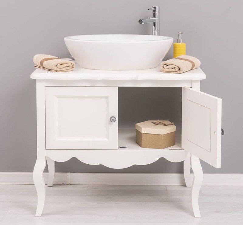 Produktinformationen "Badezimmerschrank 90 cm mit geschwungenen Beinen für 1 Waschbecken - Badezimmermöbel"