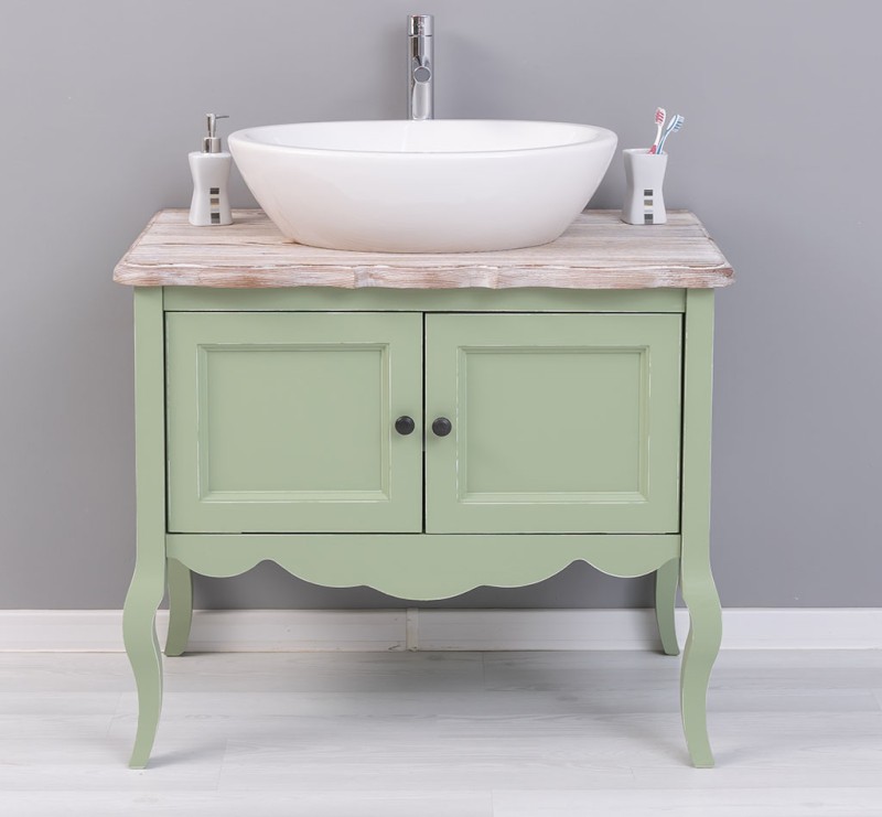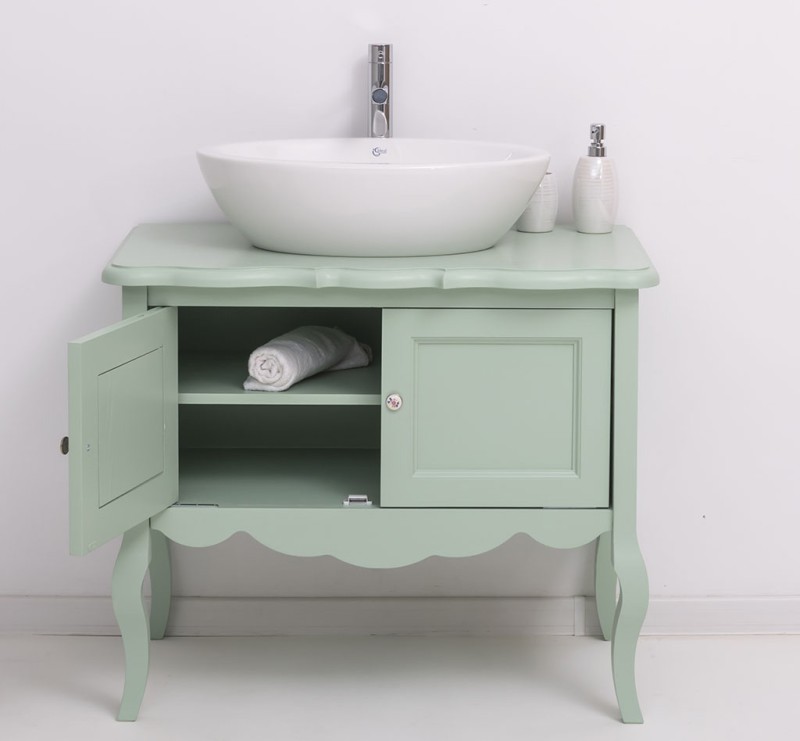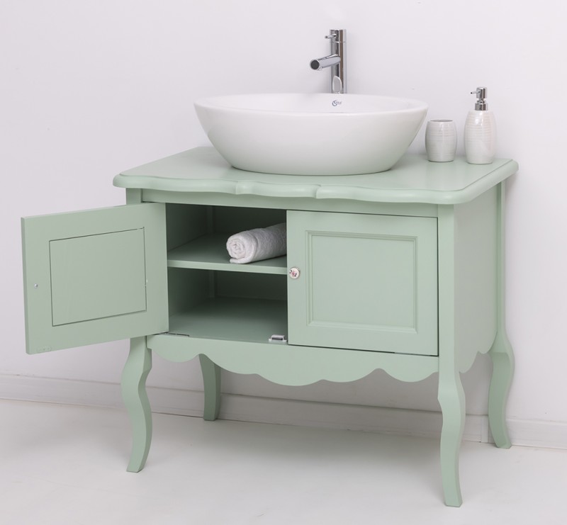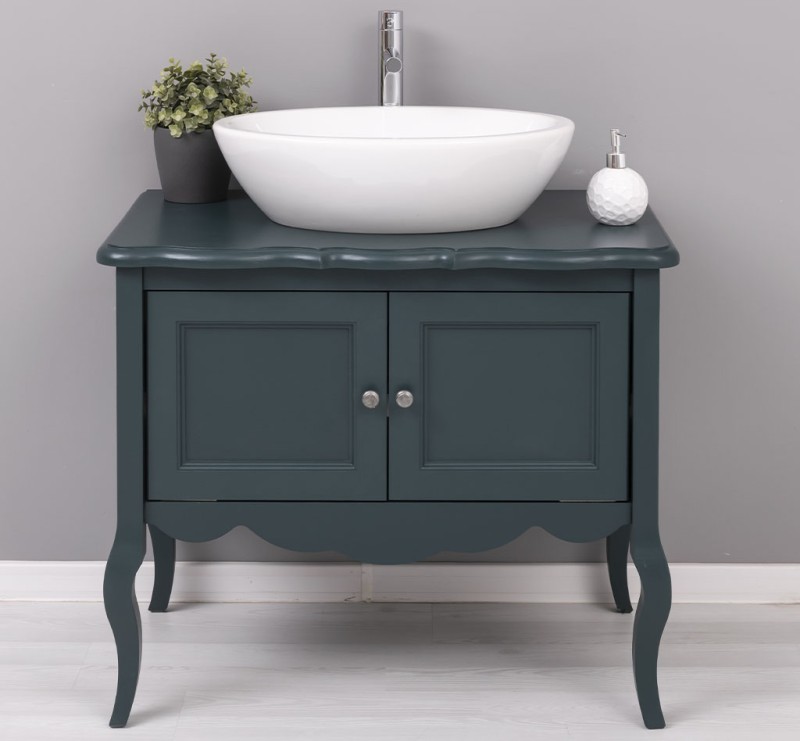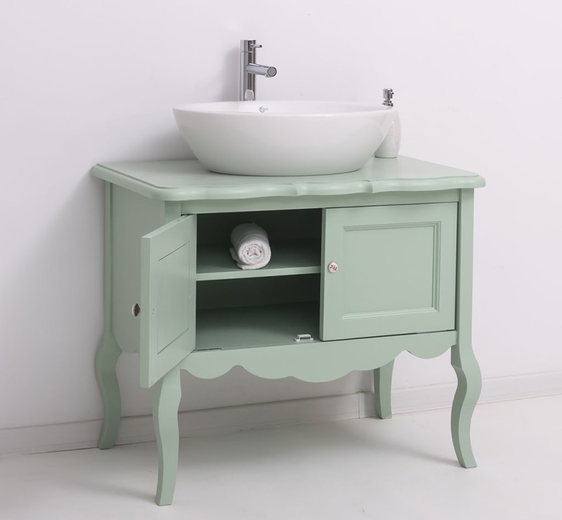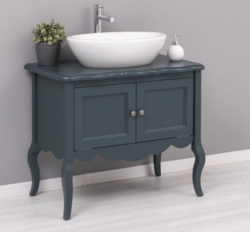 Produktinformationen "Badezimmerschrank 90 cm mit geschwungenen Beinen für 1 Waschbecken - Badezimmermöbel"
