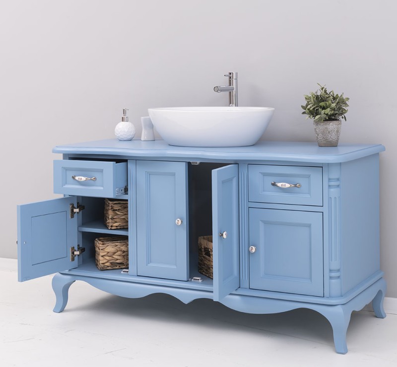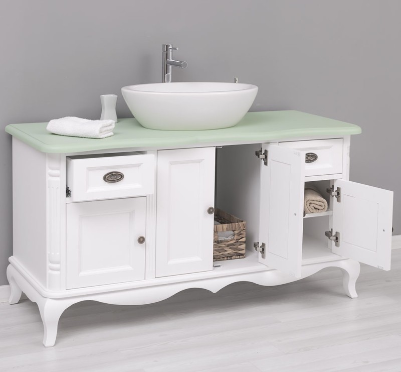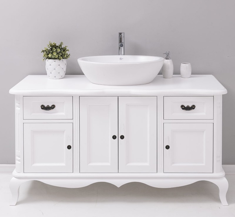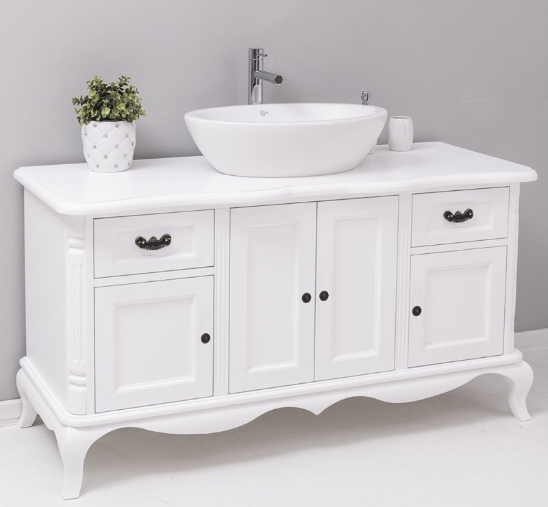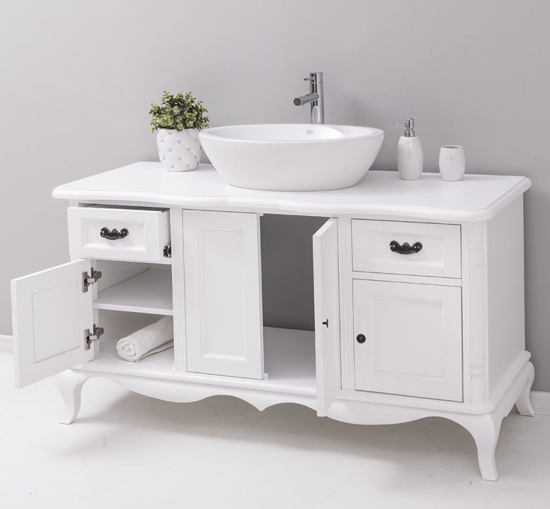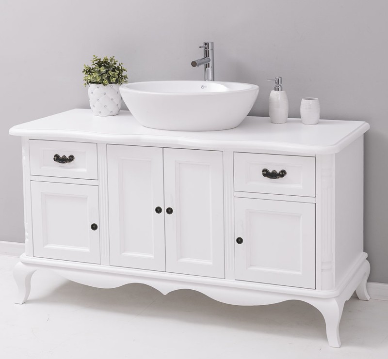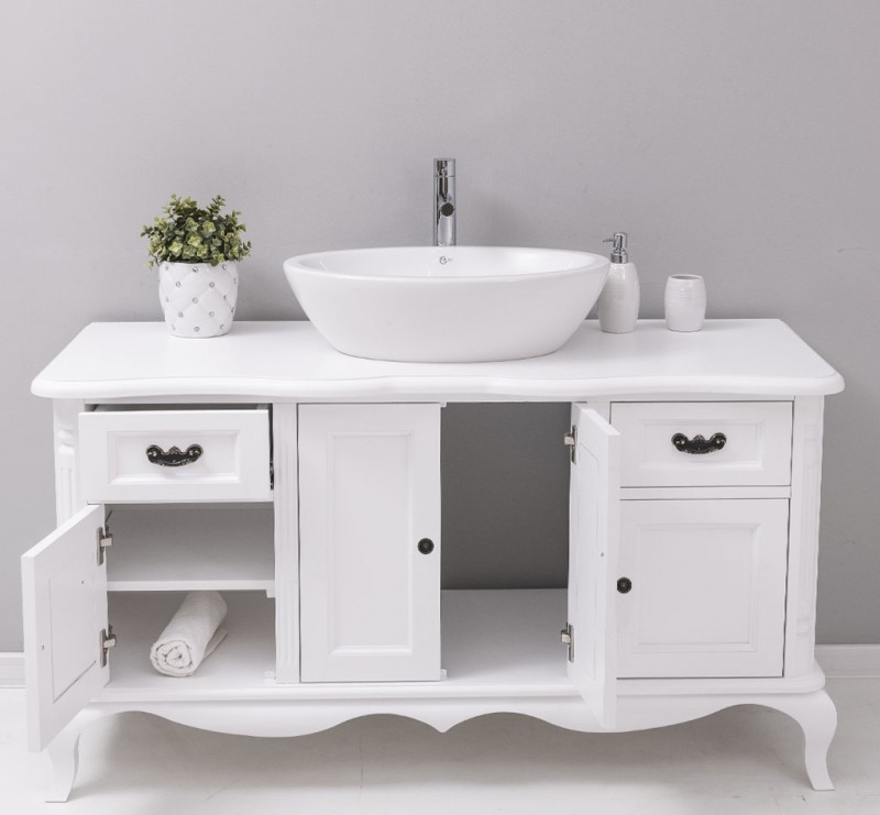 Produktinformationen "Badezimmerschrank 140 cm mit geschwungenen Füssen für 1 Waschbecken - Badezimmermöbel"