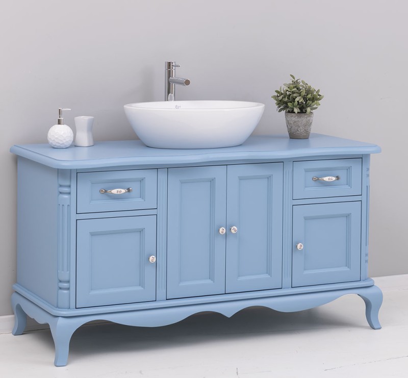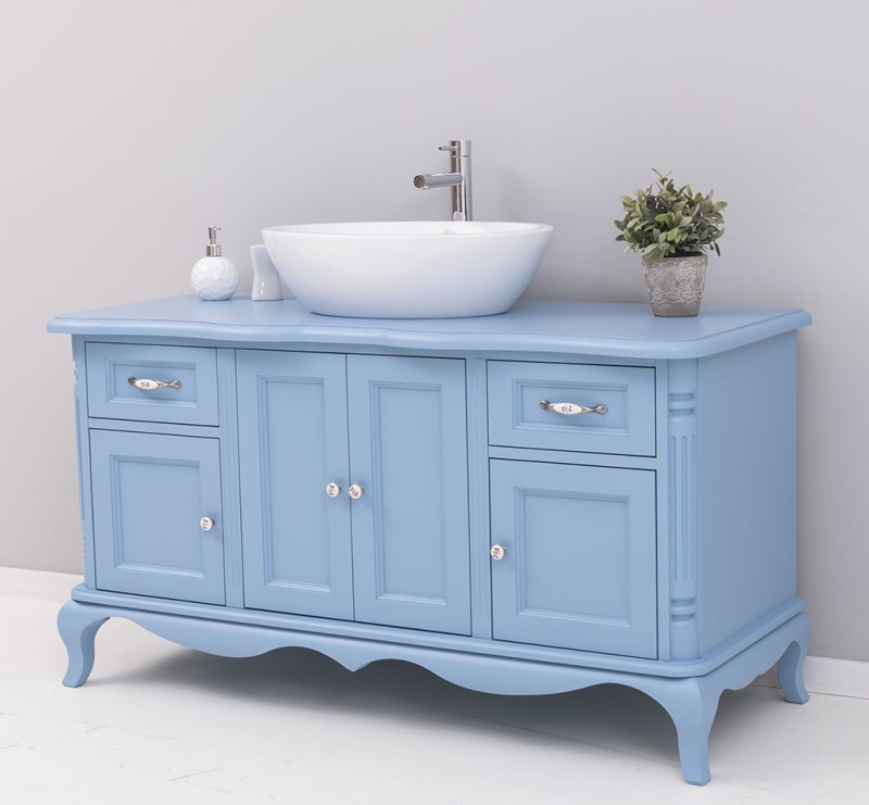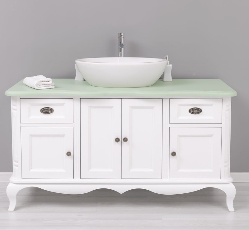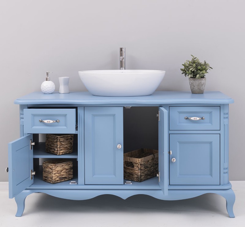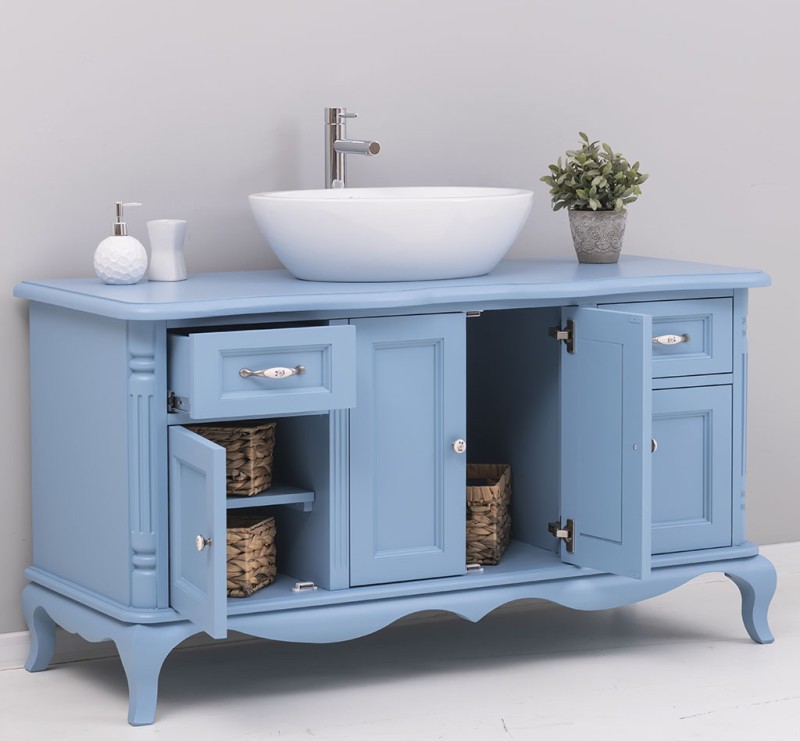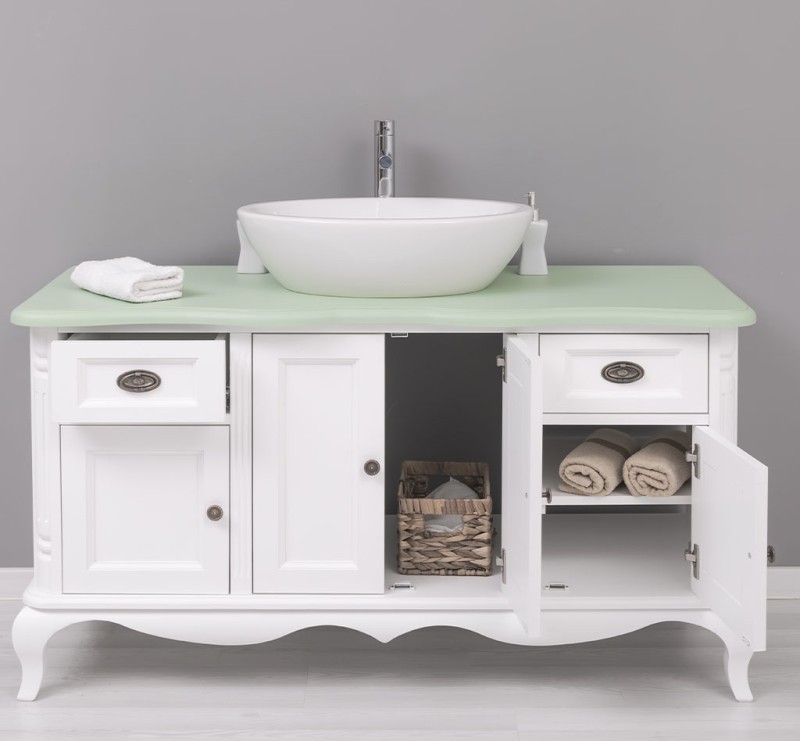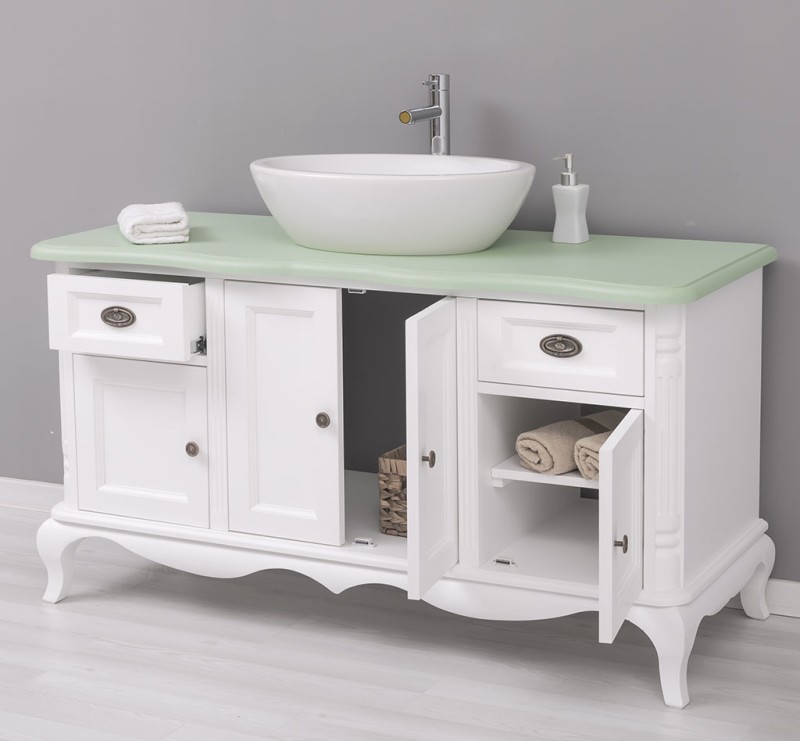 Produktinformationen "Badezimmerschrank 140 cm mit geschwungenen Füssen für 1 Waschbecken - Badezimmermöbel"