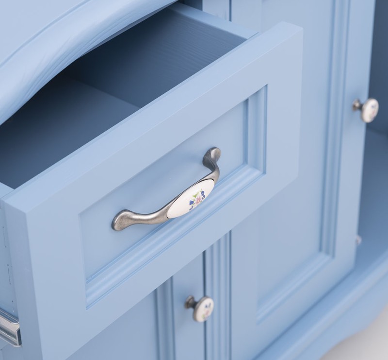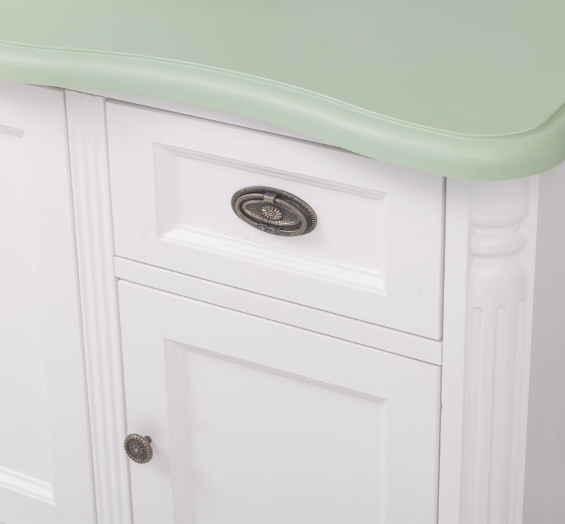 Produktbeschreibung: Unser Badezimmerschrank für ein Waschbecken mit einer Schublade, zwei Türen und elegant verzierten Füssen ist die perfekte Ergänzung für Ihr Badezimmer. Hergestellt in Europa aus hochwertigem 100 % massiven Kiefernholz, bietet dieses Möbelstück nicht nur eine beeindruckende Optik, sondern auch langanhaltende Qualität. Design trifft Funktionalität: Bei der Gestaltung Ihres Badezimmers sind sowohl Funktionalität als auch Design von entscheidender Bedeutung. Durch die spezifischen Ornamente, die an diesem Artikel angebracht sind wird dem Badezimmerschrank eine zusätzliche Portion Eleganz verliehen. Vielfältige Optionen: Der Artikel kann aus massiven Kiefernholz oder auch aus massiven Eichenholz gefertigt werden. Bitte beachten Sie, dass Waschbecken und Wasserhähne nicht im Preis enthalten sind, aber Sie können diese passend auf unserer Website in den Kategorien "Wasserhähne" und "Produkte" finden, um die perfekte Harmonie zu schaffen. Großzügiger Stauraum: Unser Badezimmerschrank bietet großzügigen Stauraum hinter zwei Türen sowie durch die durchgehende Schublade. Pflegehinweise: Die Reinigung ist mühelos - verwenden Sie einfach ein leicht feuchtes Tuch, um Staub und Schmutz zu entfernen. Aufgrund der spezifischen Eigenschaften von Massivholz empfehlen wir, den Schrank nach Kontakt mit Wasser mit einem trockenen Tuch abzuwischen und trocken zu halten. Verleihen Sie Ihrem Badezimmer mit unserem hochwertigen Badezimmerschrank einen Hauch von Eleganz und Funktionalität. Bestellen Sie jetzt und verwandeln Sie Ihr Badezimmer in einen Ort der Exzellenz und Raffinesse! Abmessungen: H: 74 cm, B: 90 cm, T: 51 cm Außenfarbe - frei wählbar Innenfarbe - frei wählbar Massivholz Möbel Landhausstil Tischplatte 100% Kiefernholz Korpus 100% Kiefernholz verschiedene Farben wählbar Beschläge/Griffe wählbar Oberflächen und Farben sind frei wählbar. 36 Farben und 8 Oberflächen (lackiert/gewachst/natur usw.) - Andere Abmessungen und Sonderanfertigungen sind möglich. Türgriffe, Schienen, Schubladengriffe. Bitte Fragen Sie uns.