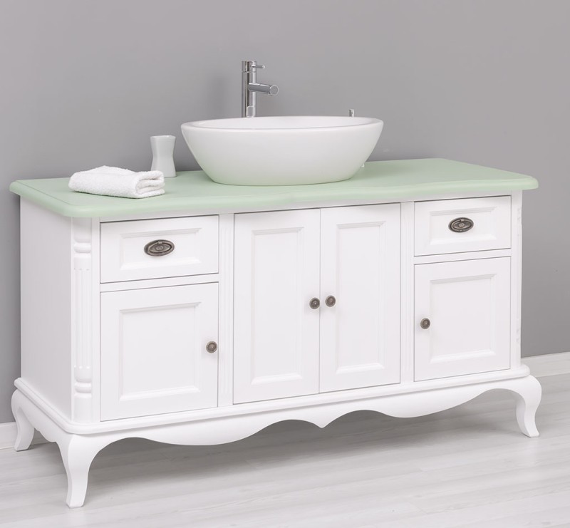 Badezimmerschrank 140 cm mit geschwungenen Füssen für 1 Waschbecken - Badezimmermöbel