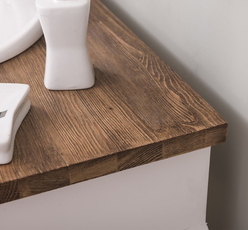 Vielfältige Gestaltungsmöglichkeiten: Wählen Sie zwischen verschiedenen Tischplatten, darunter massives Kiefernholz, Eichenholz oder eine verzinkte Tischplatte, um die Oberfläche noch widerstandsfähiger zu gestalten. Beachten Sie, dass das Waschbecken, der Wasserhahn und der Spiegel nicht im Lieferumfang enthalten sind, jedoch passende Optionen auf unserer Website erhältlich sind, um Ihr Badezimmer perfekt abzustimmen.