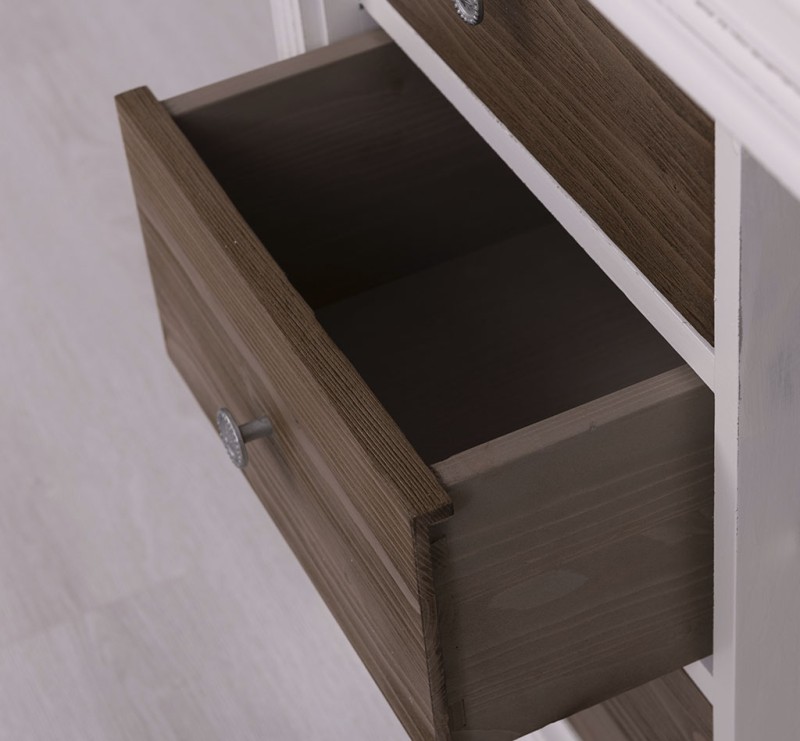 Pflegehinweise: Die Reinigung ist unkompliziert - verwenden Sie einfach ein leicht feuchtes Tuch, um Staub und Schmutz zu entfernen. Aufgrund der spezifischen Eigenschaften von Massivholz empfehlen wir, den Schrank nach Kontakt mit Wasser mit einem trockenen Tuch abzuwischen und trocken zu halten.