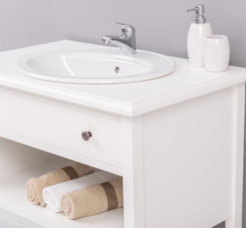 Zeitlos schön – unser ovales Waschbecken im Landhausstil Mit seiner eleganten, ovalen Form ist dieses Waschbecken der perfekte Begleiter für unsere Landhaus-Waschtische. Es wurde speziell auf deren Maße abgestimmt – so passt alles perfekt zusammen, auch bei der Wahl der passenden Armatur. Abmessungen: ca.: H-B-T: 20x56x46 cm Gut zu wissen: Wasserhahn, Ablaufgarnitur und Siphon sind nicht im Lieferumfang enthalten.