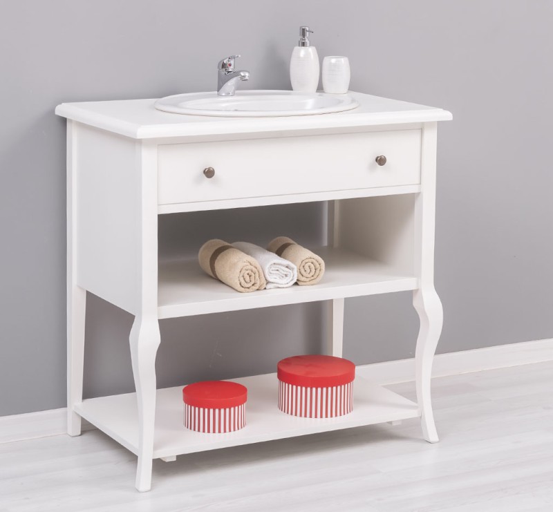 Produktbeschreibung: Unser Badezimmerschrank für ein Waschbecken mit einer Schublade, zwei Türen und elegant verzierten Füssen ist die perfekte Ergänzung für Ihr Badezimmer. Hergestellt in Europa aus hochwertigem 100 % massiven Kiefernholz, bietet dieses Möbelstück nicht nur eine beeindruckende Optik, sondern auch langanhaltende Qualität. Design trifft Funktionalität: Bei der Gestaltung Ihres Badezimmers sind sowohl Funktionalität als auch Design von entscheidender Bedeutung. Durch die spezifischen Ornamente, die an diesem Artikel angebracht sind wird dem Badezimmerschrank eine zusätzliche Portion Eleganz verliehen. Vielfältige Optionen: Der Artikel kann aus massiven Kiefernholz oder auch aus massiven Eichenholz gefertigt werden. Bitte beachten Sie, dass Waschbecken und Wasserhähne nicht im Preis enthalten sind, aber Sie können diese passend auf unserer Website in den Kategorien "Wasserhähne" und "Produkte" finden, um die perfekte Harmonie zu schaffen. Großzügiger Stauraum: Unser Badezimmerschrank bietet großzügigen Stauraum hinter zwei Türen sowie durch die durchgehende Schublade. Pflegehinweise: Die Reinigung ist mühelos - verwenden Sie einfach ein leicht feuchtes Tuch, um Staub und Schmutz zu entfernen. Aufgrund der spezifischen Eigenschaften von Massivholz empfehlen wir, den Schrank nach Kontakt mit Wasser mit einem trockenen Tuch abzuwischen und trocken zu halten. Verleihen Sie Ihrem Badezimmer mit unserem hochwertigen Badezimmerschrank einen Hauch von Eleganz und Funktionalität. Bestellen Sie jetzt und verwandeln Sie Ihr Badezimmer in einen Ort der Exzellenz und Raffinesse! Abmessungen: H: 74 cm, B: 90 cm, T: 51 cm Außenfarbe - frei wählbar Innenfarbe - frei wählbar Massivholz Möbel Landhausstil Tischplatte 100% Kiefernholz Korpus 100% Kiefernholz verschiedene Farben wählbar Beschläge/Griffe wählbar Oberflächen und Farben sind frei wählbar. 36 Farben und 8 Oberflächen (lackiert/gewachst/natur usw.) - Andere Abmessungen und Sonderanfertigungen sind möglich. Türgriffe, Schienen, Schubladengriffe. Bitte Fragen Sie uns.