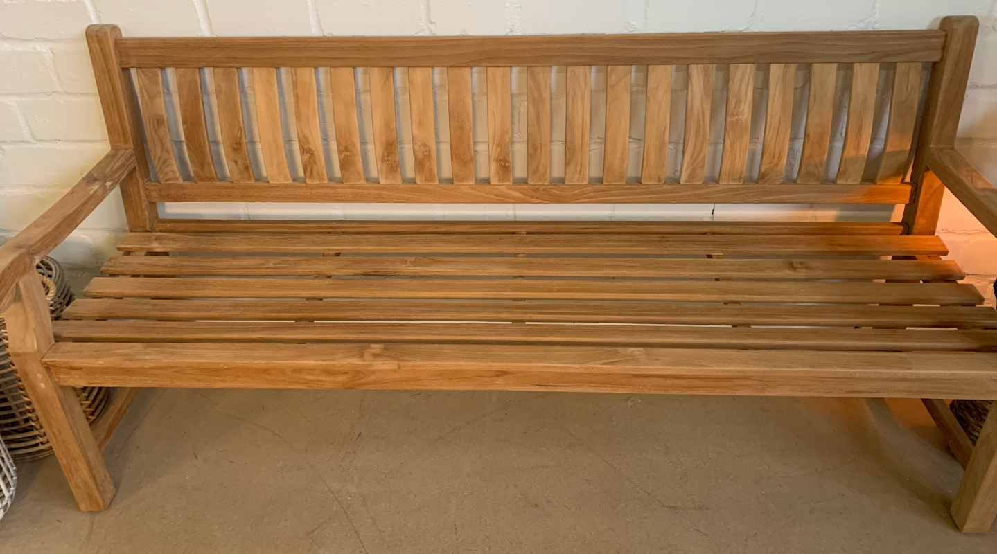 Eine schöne Gartenbank aus massivem Teakholz. Die Bank ist robust und massiv. Die Bank ist witterungsbeständig und kann auch bei Wind und Regen draußen stehen. Eine hochwertige und robust verarbeitete Gartenbank. Mit einer ergonomisch geformte Sitz- und Rückenfläche. Diese Gartenbank Ihnen einen hohen Sitzkomfort. Teakholz ist ein dichtes Hartholz mit einem hohen natürlichen Öl Anteil und daher von Natur aus wasserabweisend und sehr robust. Die Bank ist pflegeleicht. Abmessungen (L/B/H): in verschiedenen Maßen erhältlich 1 A Premium Teakholz robuste Verarbeitung Witterungsbeständig demontiert massive Ausführung In drei Größen lieferbar: 120cm 150cm 200cm Unsere Teak Gartenmöbel passen zu jedem Garten-Stil. Diese Teak Bank ist sowohl für den Innen-und Außenbereich geeignet. Die Kollektionen von unseren Gartenmöbeln sind sehr umfangreich. Tische und Bänke sind in vielen Maßen erhältlich. Besuchen Sie unsere Ausstellung in Neuss.