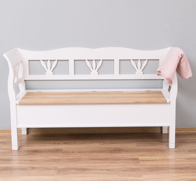 Die Sitzfläche aus Eichenholz garantiert nicht nur Stabilität und Strapazierfähigkeit, sondern macht die Bank auch zum dekorativen Highlight in jedem Raum. Nutzen Sie die vielseitigen Möglichkeiten dieser Truhenbank und erhöhen Sie den Komfort und Stil in Ihrem Zuhause.