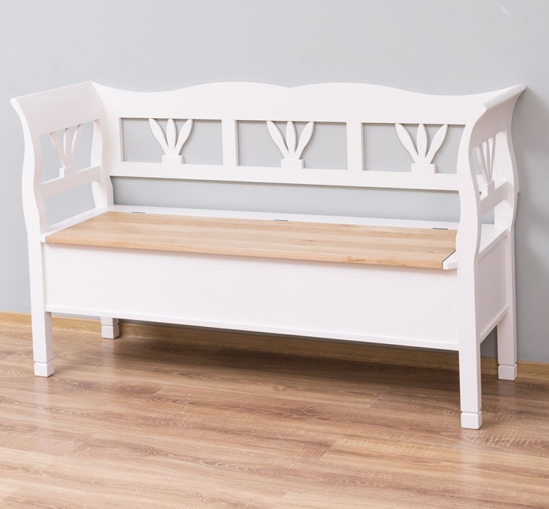 Eine schöne Landhaus Bank in 163 cm. Diese Sitzbank im Landhaus Stil ist in vielen Farben lieferbar. Die Truhenbank wird Ihre Wohnräume verschönern. Diese Bank vereint Funktionalität und Design auf harmonische Weise. Sie erweckt Erinnerungen an vergangene Zeiten und bietet mit einem klappbaren Sitz und großzügigem Stauraum unter dem Sitz eine praktische Lösung für Ihr Zuhause. Die Abmessungen: ca.: Höhe 92 cm - Breite 163 cm - Tiefe 48 cm. Stauraum Kiefernholz Fertig montiert Farbe wählbar Geben Sie bitte Ihre gewünschte Farbe beim Kauf im Kommentarfeld mit an. Dies ist ein Beispielbild von der Truhenbank 117 cm