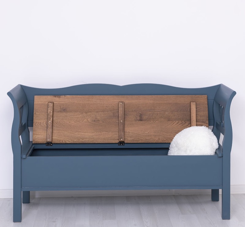 Die Sitzfläche aus Eichenholz garantiert nicht nur Stabilität und Strapazierfähigkeit, sondern macht die Bank auch zum dekorativen Highlight in jedem Raum. Nutzen Sie die vielseitigen Möglichkeiten dieser Truhenbank und erhöhen Sie den Komfort und Stil in Ihrem Zuhause.