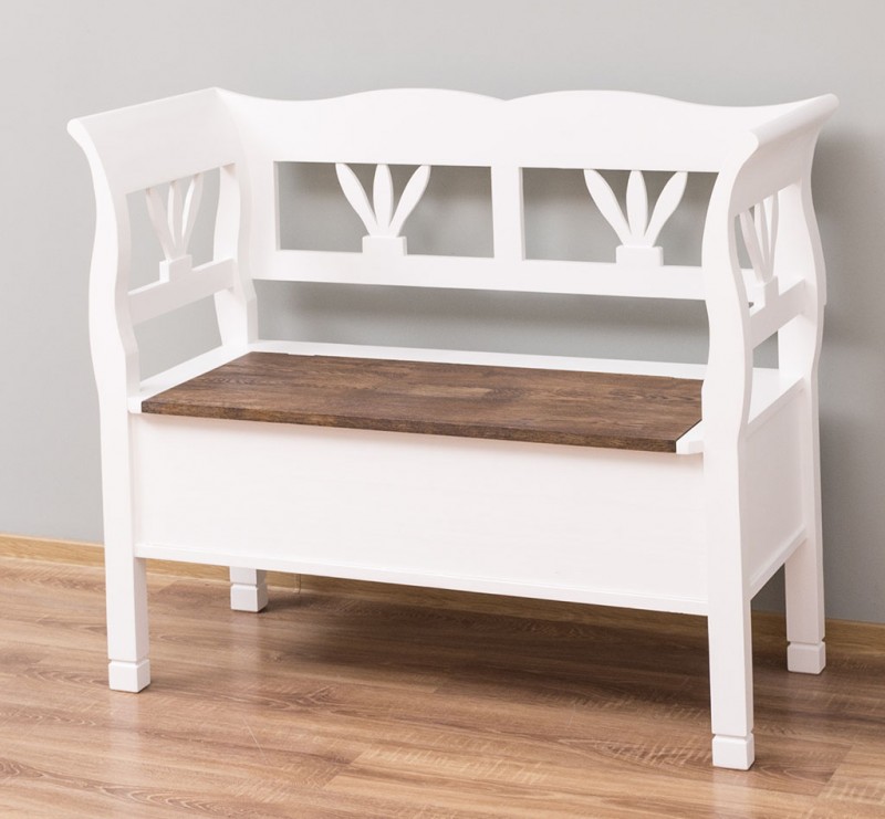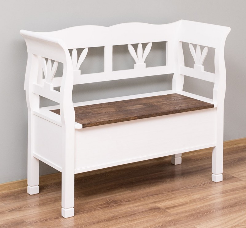 Eine schöne Landhaus Bank in 117 cm. Diese Sitzbank im Landhaus Stil ist in vielen Farben lieferbar. Die Truhenbank wird Ihre Wohnräume verschönern. Diese Bank vereint Funktionalität und Design auf harmonische Weise. Sie erweckt Erinnerungen an vergangene Zeiten und bietet mit einem klappbaren Sitz und großzügigem Stauraum unter dem Sitz eine praktische Lösung für Ihr Zuhause. Die Abmessungen: ca.: Höhe 92 cm - Breite 117 cm - Tiefe 48 cm. 100 % Kiefernholz Fertig montiert Farbe wählbar Geben Sie bitte Ihre gewünschte Farbe beim Kauf im Kommentarfeld mit an.