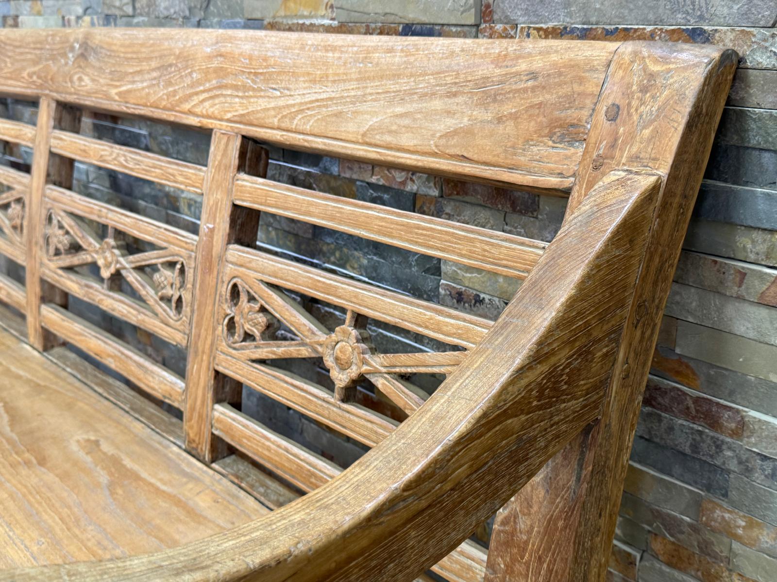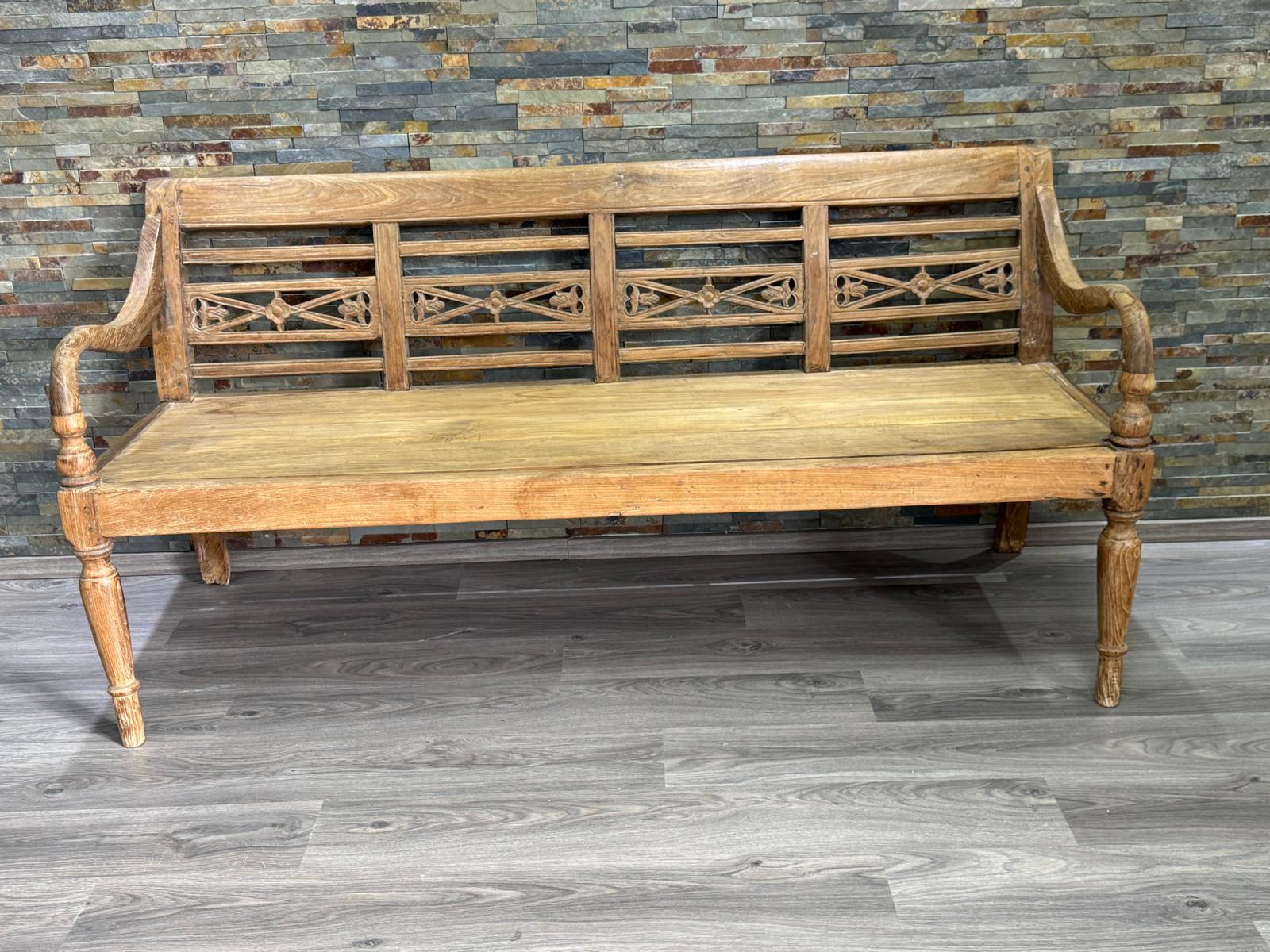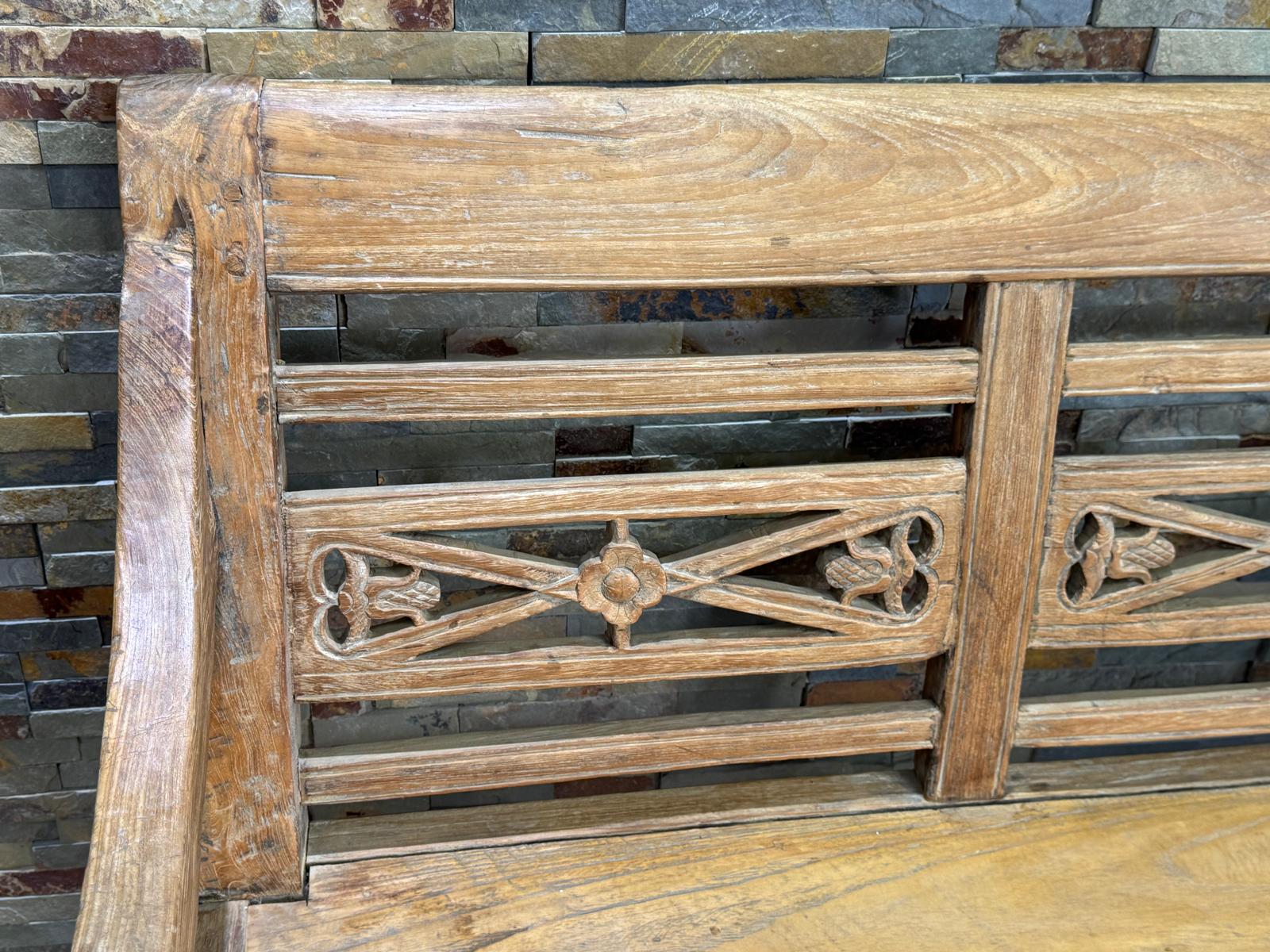 Erleben Sie den unvergleichlichen Charme eines echten antik indonesischen Teakmöbels! Diese handgefertigte Bali Teak Bank wurde von traditionellen Handwerkern geschaffen und erzählt heute ihre eigene Geschichte.