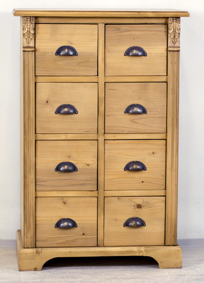 Ein Massivholz Brotschrank. Der Schrank wurde mit Antikwachs behandelt und aufpoliert. Der Innenausbau beinhaltet stabile Regalböden. Es ist in nach alten Vorlagen in unserer Fachwerkstatt gefertigt worden und befindet sich im wohnfertigem Zustand. Die Kommode im angesagten Landhaus-Stil ist ein hochwertiges, zeitloses Möbelstück, welches überall in Ihrem Haus einen prägenden Eindruck hinterlässt und eine gute Figur macht.