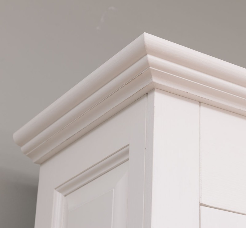 Vitrinen Schrank Neuss 240cm Die Verbindung von Glasfronten und geräumigen Schubladen schafft eine harmonische Balance zwischen Ästhetik und Zweckmäßigkeit. Der Vitrinenschrank Neuss wird zum Blickfang in jedem Raum, dank der geschickten Fusion von Glas, Holz und modernem Design. Vielseitige Raffinesse Ob im Esszimmer, Wohnbereich oder Flur – der Landhaus Vitrinenschrank Neuss verschönert und organisiert auf charmante Weise. Entdecken Sie den unwiderstehlichen Zauber des Landhaus Vitrinenschrankes Neuss: Landhaus-Charme gepaart mit moderner Eleganz. Perfekt für stilvolles Präsentieren und Aufbewahren. Abmessung H x B x T: 220 x Korpus 240 x 50/40 cm Stil: Landhaus Farbe: weiß Kiefer lackiert Konzept: Neuss 6 - Schiebetüren 3 - Schubladen Softclose Fertig montiert 2-teilig Die Schiebetüren sind in Aluminiumschienen montiert, gleiten sanft und erzeugen beinahe den Eindruck zu schweben. Die Schubladen sind mit einer Soft-Closing-Funktion ausgestattet - moderner Luxus. Die Seiten des Oberschranks bestehen aus Glas, was eine angenehme Aussicht ermöglicht und den Schrank mit Licht durchflutet. Der Vitrinenschrank Neuss kann ebenfalls in sämtlichen anderen RAL-Farben angefertigt werden. Sie haben die Möglichkeit, die Farbe zu wählen, die am besten zu Ihrer Einrichtung passt. Sie können sogar die Außenseite und Innenseite dieses Schranks in unterschiedlichen Farben gestalten. Dieses Modell ist in Breiten von 100 bis 300 cm erhältlich.