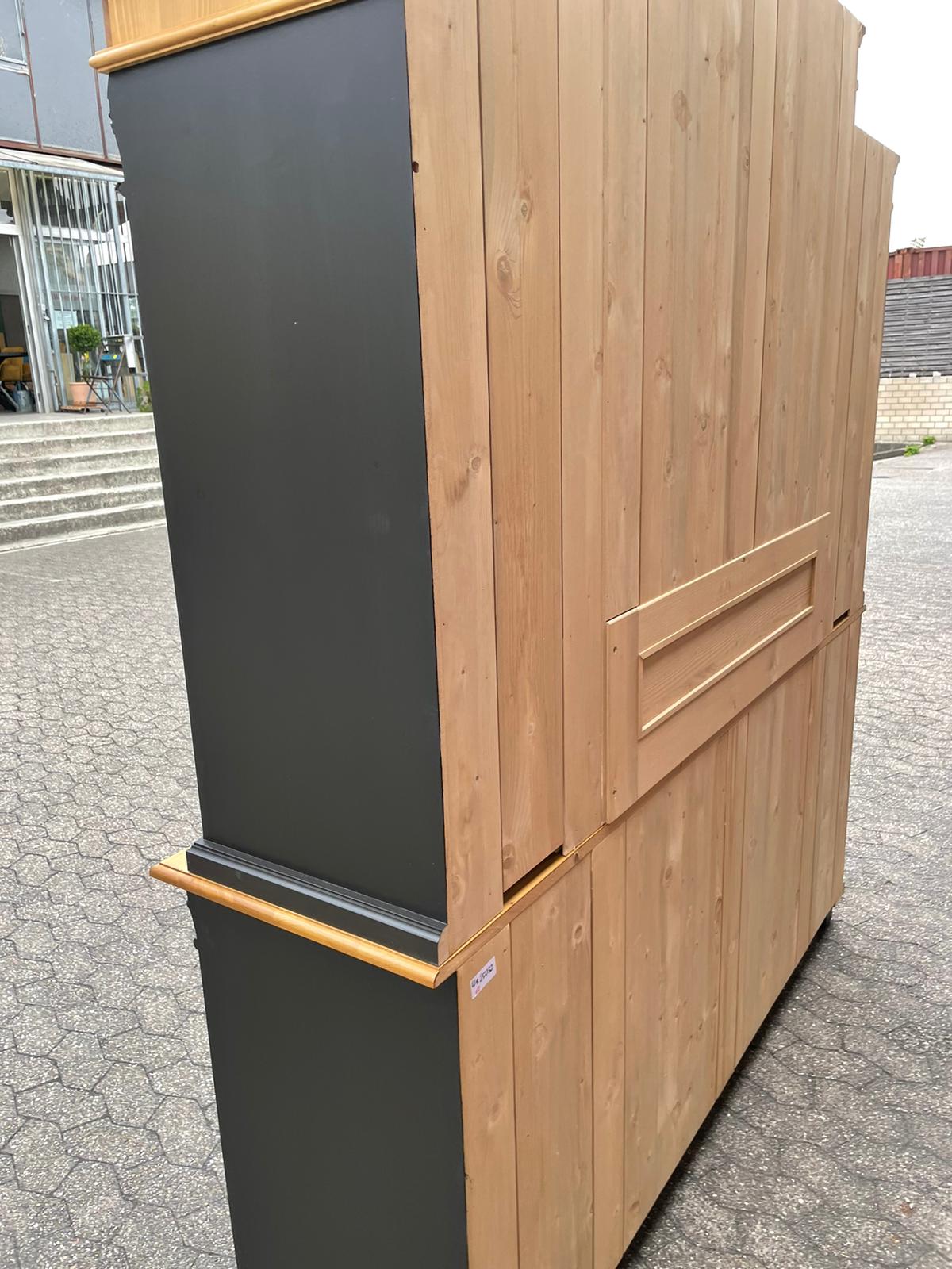 Ein schönes Weichholz Buffet. Mit stabilen Regalböden. Das Antikwachs veredelt das Holz und die zusätzliche Politur gibt dem Buffetschrank einen schönen Politurglanz. Der Schrank im angesagten Landhausstil ist ein hochwertiges und zeitloses Möbelstück, welches überall in Ihrem Haus einen prägenden Eindruck hinterlässt. Abmessungen: Höhe: 210 cm, Breite: 182 cm, Tiefe: 54 cm. Weichholz Ladenschrank gewachst und aufpoliert mit Innenausbau fertig montiert 2-teilig Kredenz Weichholzmöbel