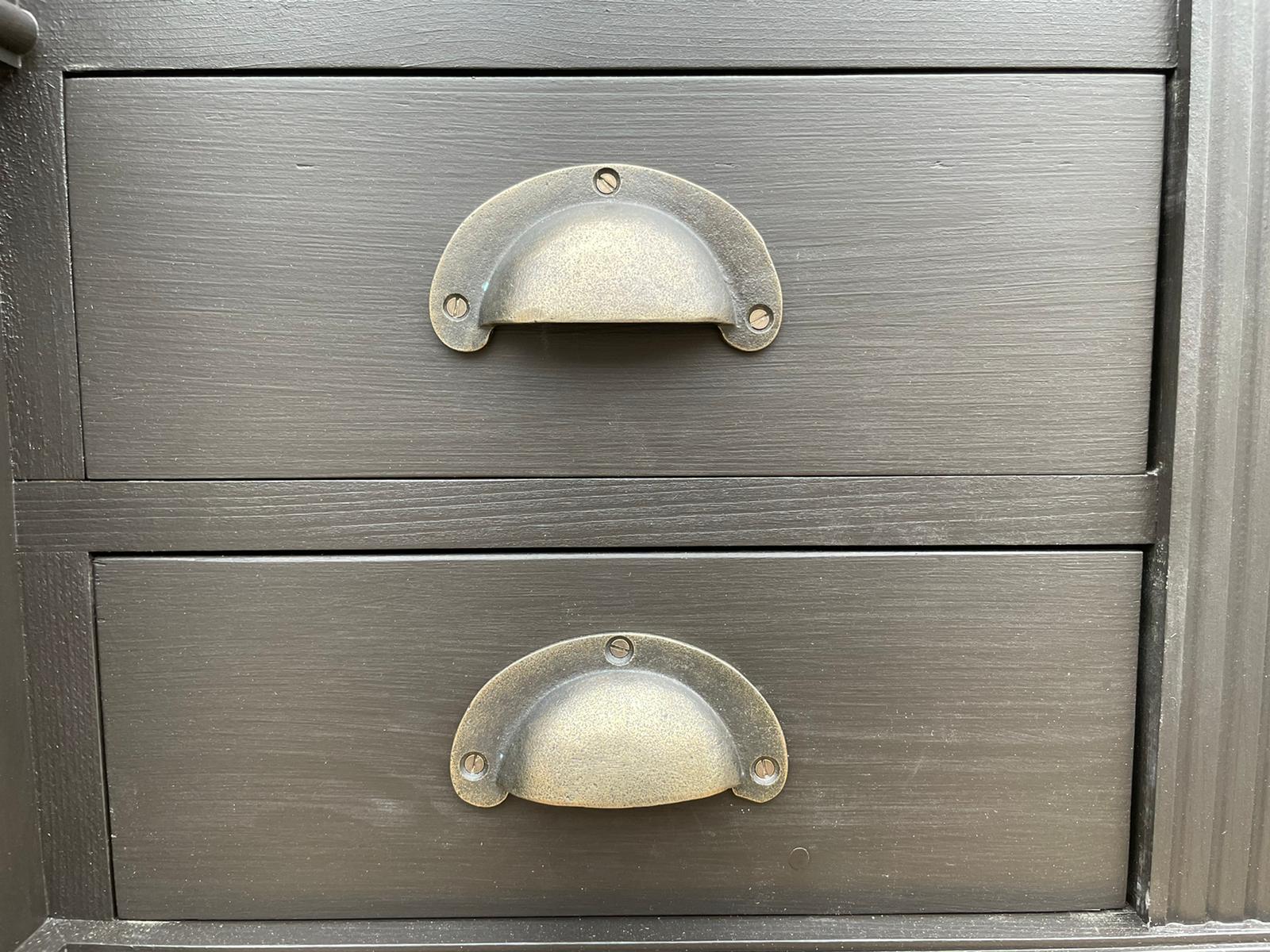 Ein romantisches Landhaus Buffet aus Weichholz mit großen Schubladen und schönen Muschelgriffen. Der Buffetschrank wurde von Hand bearbeitet und aufwendig mit viel Liebe zum Detail hergestellt. Der Innenausbau beinhaltet stabile Regalböden. Der 2-teilige Buffet Schrank ist in unserer Fachwerkstatt hergestellt worden und befindet sich in einem guten wohnfertigen Zustand. Ein Massivholz Buffet im angesagten Retro Stil, welches überall in Ihrem Haus einen prägenden Eindruck hinterlässt. Neben viel Stauraum in den Schubladen, lässt der obere Stauraum viel Platz für Ideen und dekorative Accessoires.