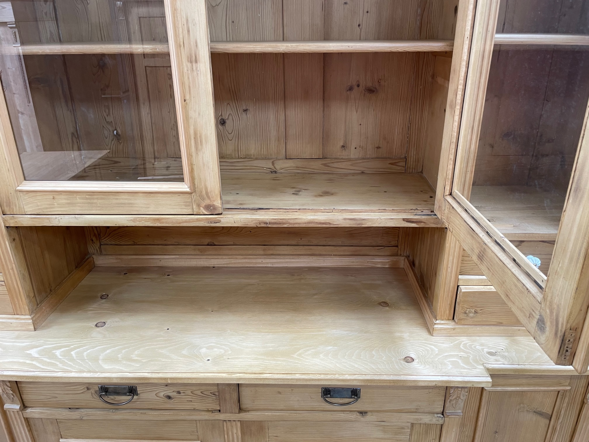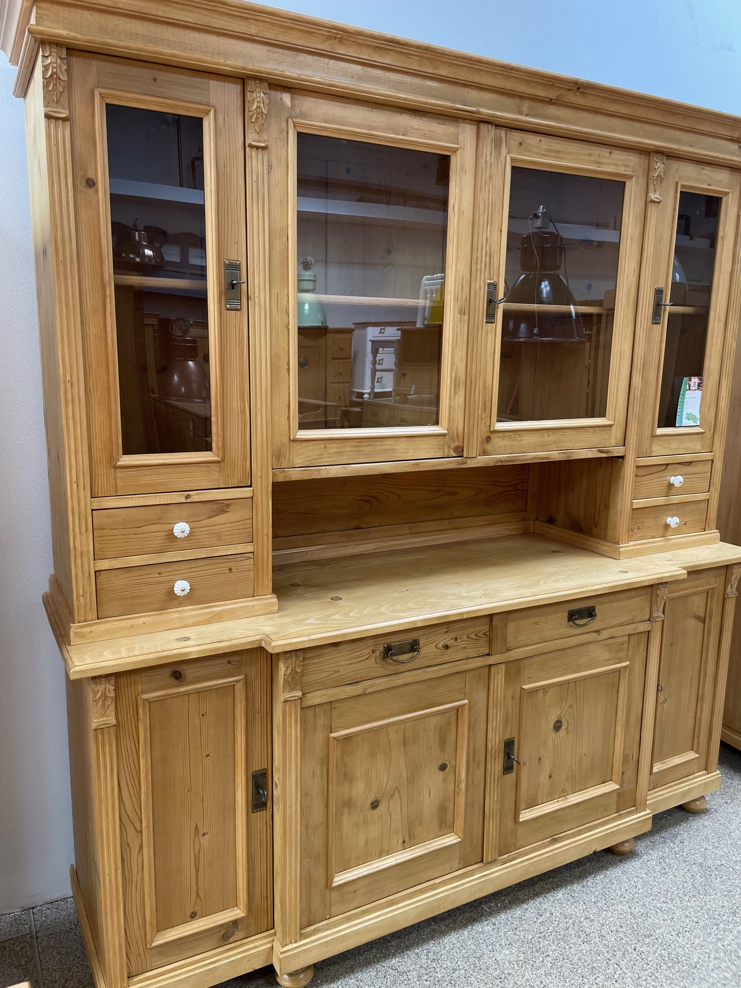 Produktinformationen "Gründerzeit Buffetschrank Weichholz Vitrine - antike Landhaus Möbel"