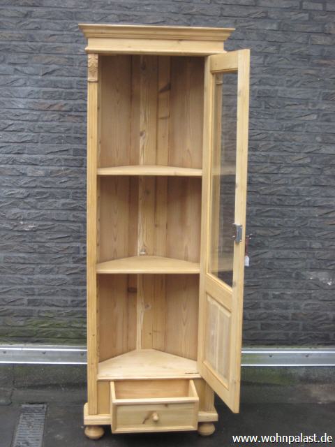 Ein schöner Eckschrank aus Weichholz. Mit einer Schublade. Das Regal wurde aus Altholz hergestellt. Die vorhandenen Gebrauchspuren haben einen antiken Charakter und sind bewusst gewollt. Ein Schrank schöner Eckschrank für Ihre Diele oder das Arbeitszimmer. Das Regal ist gewachst und poliert.