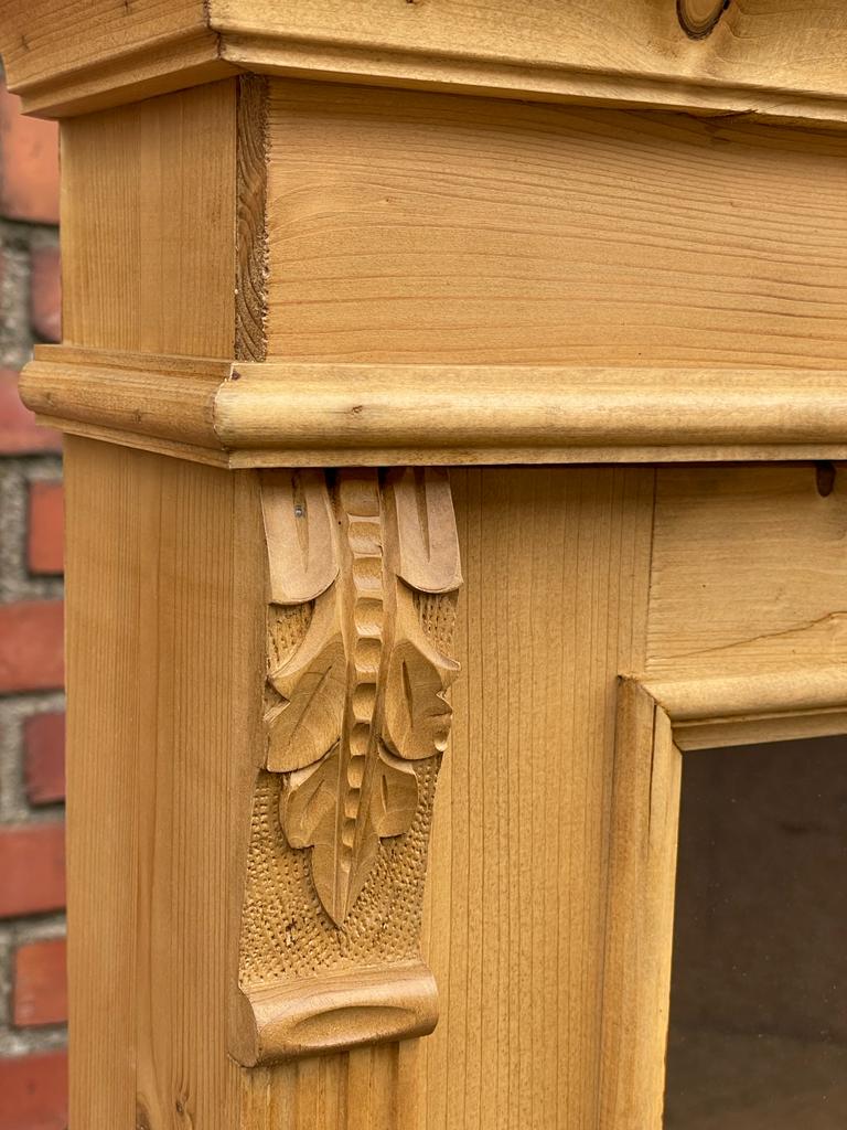 Ein Weichholz Ladenschrank. Die Eckvitrine wurde mit Antikwachs behandelt. Der Innenausbau beinhaltet stabile Regalböden. Es ist in nach alten Vorlagen in unserer Fachwerkstatt gefertigt worden und befindet sich im wohnfertigem Zustand. Die Vitrine im angesagten Landhaus-Stil ist ein hochwertiges, zeitloses Möbelstück, welches überall in Ihrem Haus einen prägenden Eindruck hinterlässt und eine gute Figur macht. Mit vier Türen und eine Schublade bietet diese Vitrine viel Stauraum.