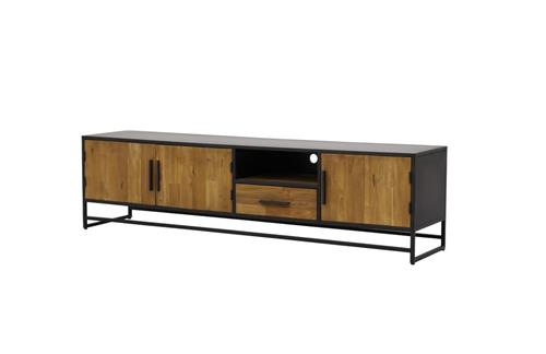 Der Felino TV-Schrank aus der Serie Felino wird auf traditionelle Weise aus Teakholz hergestellt. Durch die Kombination von Farbe und Material fügt sich dieses TV-Möbel gut in jedes industrielle Interieur ein.Der Schrank hat vier Türen, Sehr praktisch, um Ihre Sachen zu verstauen.