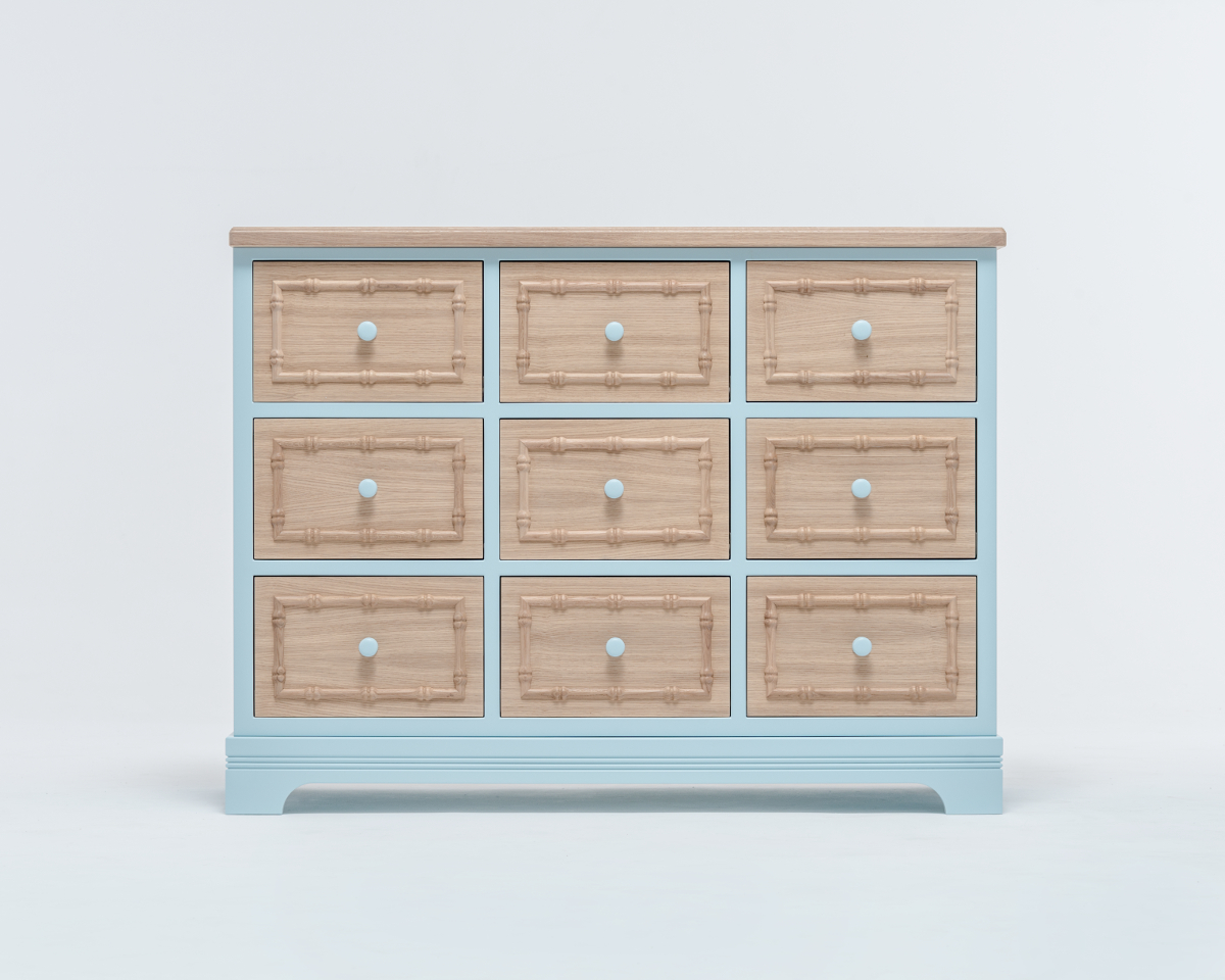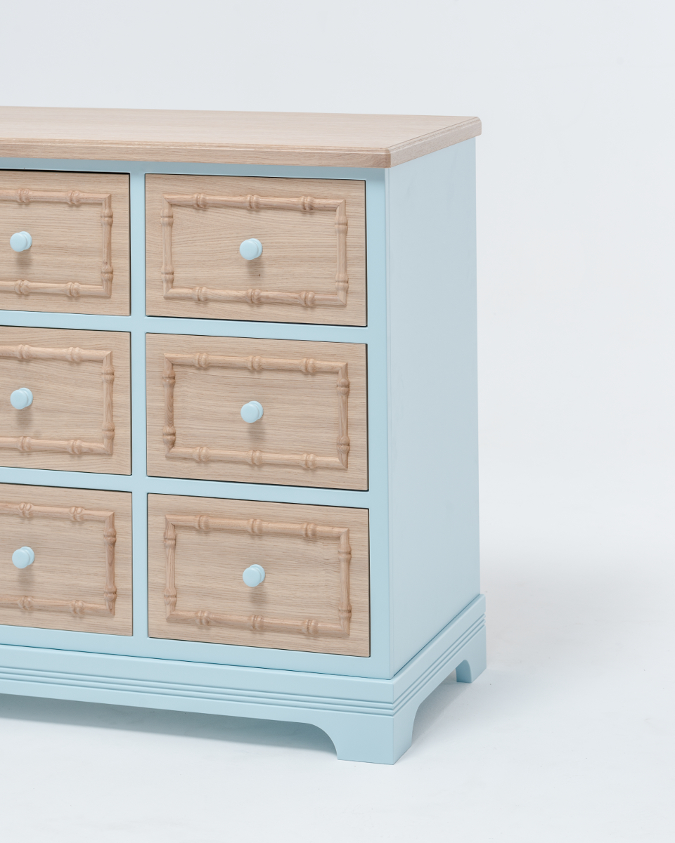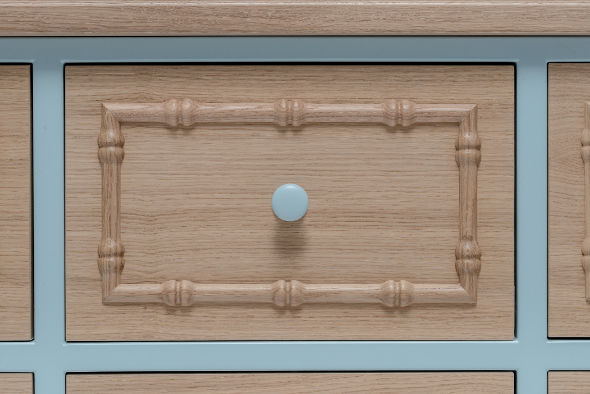 Es ist möglich, die bemalten Elemente der Kommode in einer Farbe Ihrer Wahl zu bestellen.