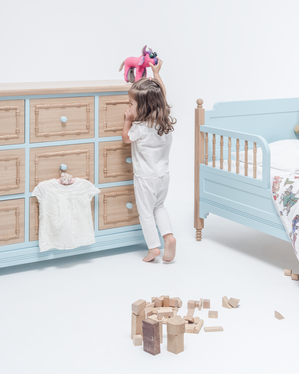 Diese sehr gut durchdachte, praktische Kommode Sofia hat ein tolles Retro-Design und erfüllt alle Bedürfnisse moderner Eltern. Diese romantische Kommode erweckt eine warme Erinnerung an die Kindheit, aber mit modernen Materialien gefertigt und lässt sich perfekt mit anderen Möbeln im Kinderzimmer kombinieren. Insbesondere die Sicherheit ist durch die solide Konstruktion gewährleistet. Die Sofia Kommode besteht aus Materialien von höchster Qualität unter Verwendung modernster Tischlerwerkzeuge und -technologien. Die Anrichte ist daher zuverlässig und langlebig. Mit und ohne Wickelauflage erhältlichEs ist möglich, die bemalten Elemente der Kommode in einer Farbe Ihrer Wahl zu bestellen. Material: lackierte Eiche, lackiertes MDF Größe: 90 x 56 x 90 cm Diese Kommode besteht aus nachhaltiger Eiche in höchster Qualität und ist schadstoffgeprüft und/oder lebensmittelecht. Diese Kommode ist die erste Wahl für die umweltbewusste und nachhaltige Familie.