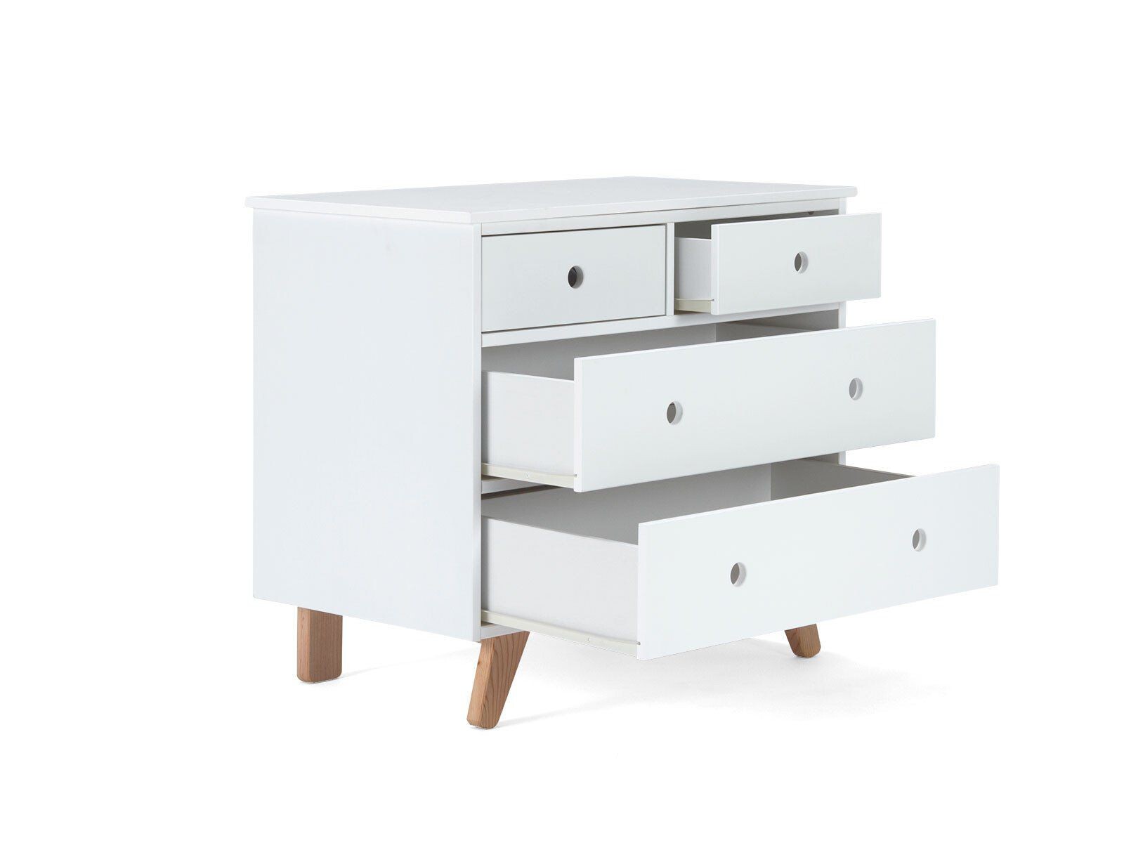 Diese sehr gut durchdachte, praktische Kommode hat ein tolles Design und erfüllt alle Bedürfnisse moderner Eltern. Diese Kommode erweckt eine warme Erinnerung an die Kindheit, aber ist mit modernen Materialien gefertigt und lässt sich perfekt mit anderen Möbeln im Kinderzimmer kombinieren.
