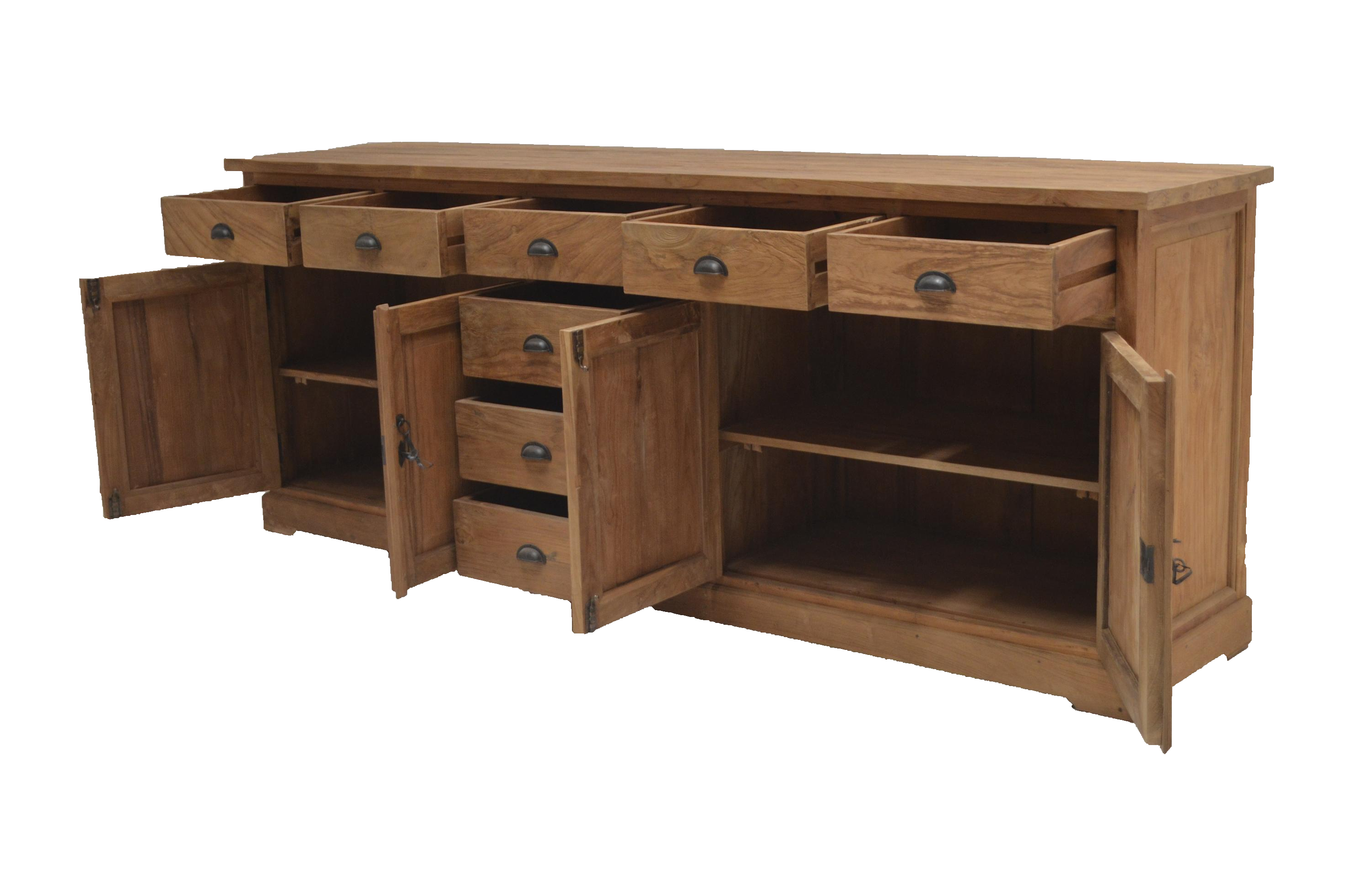 Eines schönes Sideboard aus recyceltem Teakholz. Neben viel Stauraum in den Schubladen, finden Sie hinter den Türen eine Raumteilung durch stabile Einlegeböden. Jede Kommode wurde individuell hergestellt und ist ein Unikat. Unser Möbelstücke werden nicht nur Ihr Eigenheim in neuem Glanz erstrahlen lassen, sondern Sie durch ihre Langlebigkeit auf Dauer erfreuen.