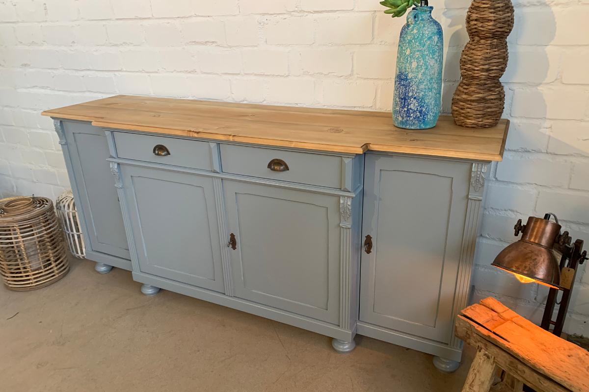 Sideboard 200 cm Massivholz Anrichte Farbe grau