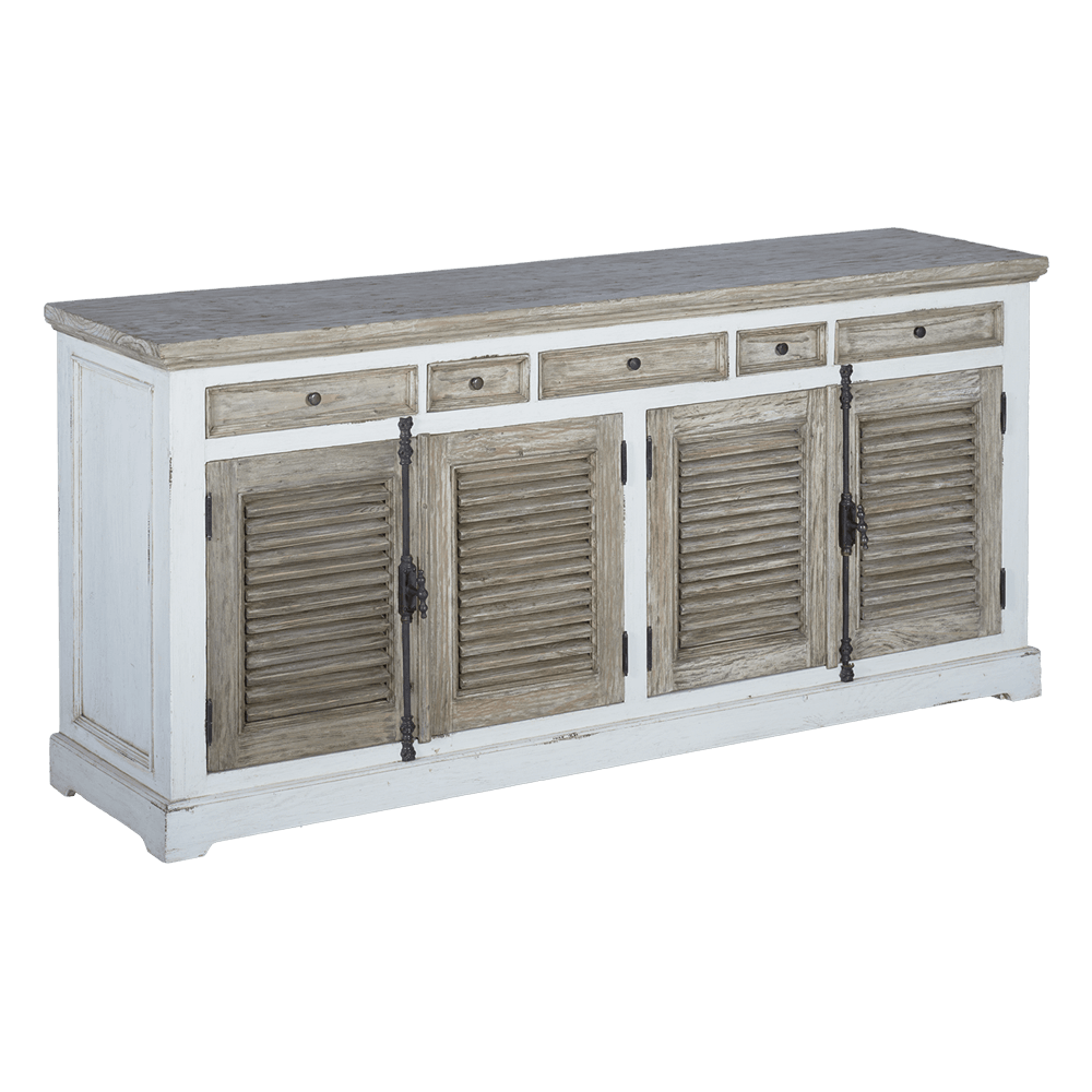 Das Sideboard hat vier Türen und fünf Schubladen, sehr praktisch, um Ihre Sachen zu verstauen. Kombinieren Sie diesen Artikel mit den anderen Möbeln aus unserer Amanda-Kollektion!