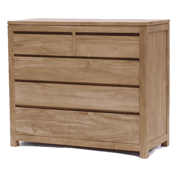Die Kommode Losari 110 cm besteht aus unbearbeiteten Teakholz, dieses Möbelstück hat einen romantischen und ländlichen Look! Diese Kommode enthält fünf grifflose Schubladen, und im oberen Teil genug Platz für alle möglichen Dinge. Durch die schönen klaren Linien und natürlichen Materialien ist dieses Möbelstück zeitlos und für jedes Interieur geeignet! Kombinieren Sie diesen Artikel mit den anderen Möbeln aus unserer Losari-Kollektion!