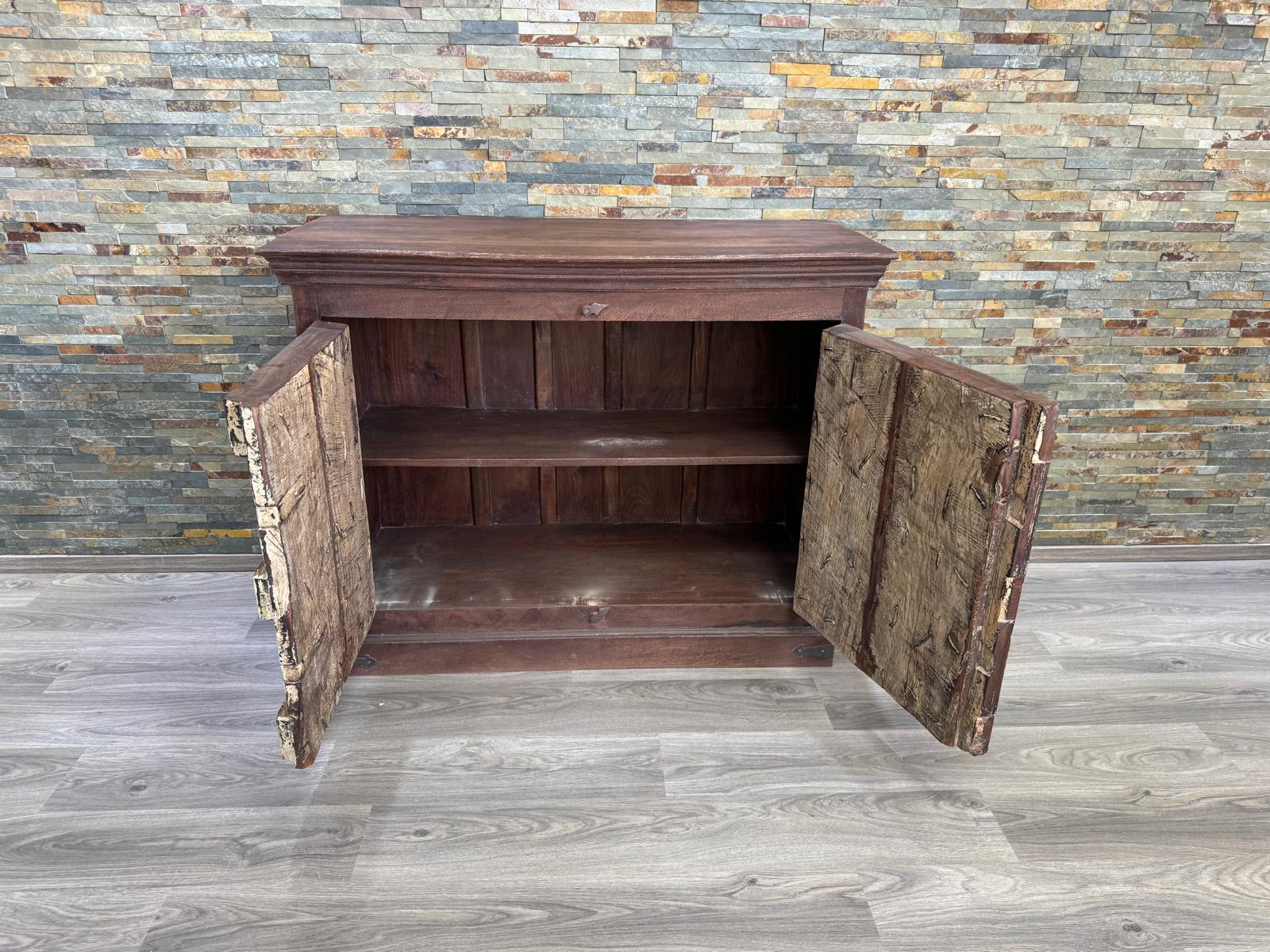 Die Indische Kommode ist ein echter Hingucker und ein Einzelstück. Diese Kommode enthält zwei Türen und im oberen Teil genug Platz für alle möglichen Dinge. Durch die Kombination von Farbe und Material passt dieses Sideboard gut in jedes Vintage Interieur.