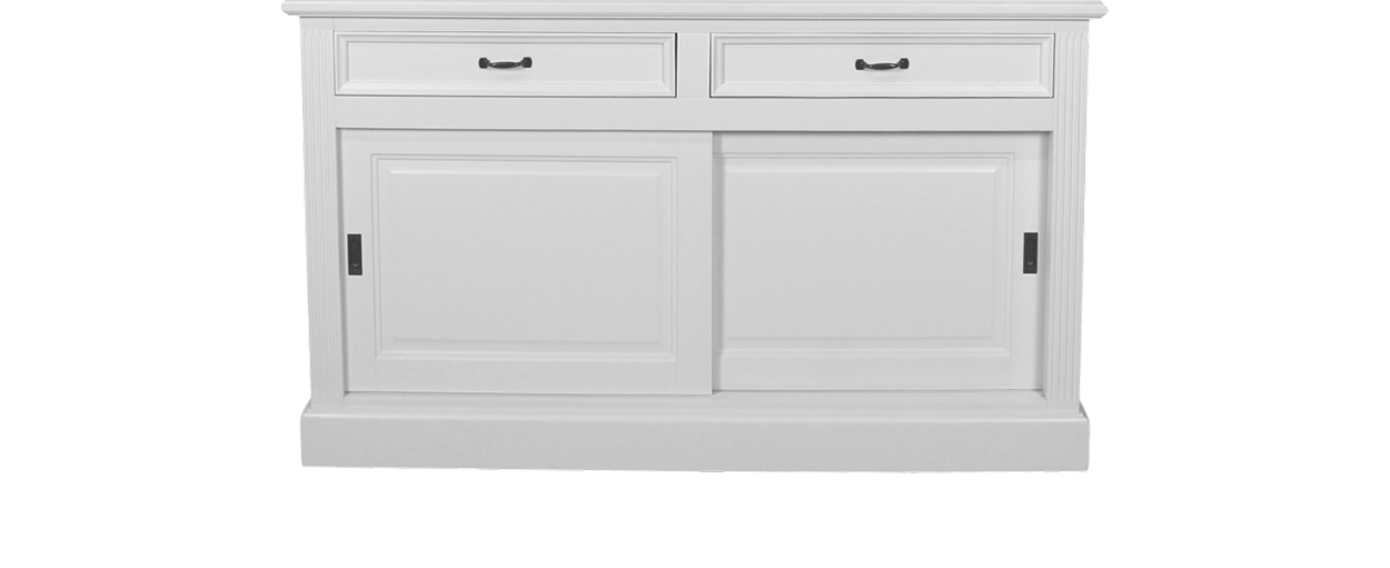 Eine schöne Kommode im Landhaus Stil. Die Kommode hat praktische Schiebetüren, ist vielseitig nutzbar und komplett weiß. Unsere Kommode 150cm im angesagten Landhaus-Stil ist ein zeitloses Möbelstück, welches überall in Ihrem Haus einen prägenden Eindruck hinterlässt. Nutzen Sie den großen Stauraum im Innenbereich, unterstreichen Sie durch die vielen Möglichkeiten mit den Wohnaccessoires den Landhaus-Stil. Die Kommode ist weiß lackiert und ist mit schönen Griffen aus Metall versehen.