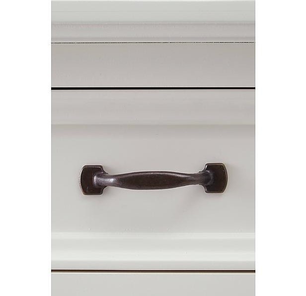 Die Kommode Fleur 100 cm hat eine schöne graue Holzplatte, die diesem Möbelstück einen romantischen und ländlichen Look verleiht! Dieser Speckschrank enthält eine Tür und fünf Schubladen. Kombinieren Sie diesen Artikel mit den anderen Möbeln aus unserer Fleur-Kollektion! Eine schöne Massivholz Kommode im angesagten Landhaus-Stil. Ein Möbelstück das überall in Ihrem Haus einen prägenden Eindruck hinterlässt und eine gute Figur macht. Neben viel Stauraum im oberen Teil mit Platz für Ideen, dekorative Accessoires und Bücher, bietet der untere Stauraum mit Türen noch zusätzliche Ablagemöglichkeiten. Die in weiß lackierte Kommode besteht aus massiven Fichtenholz. Die Beschläge und Applikationen aus Metall unterstreichen den stilvollen Landhaus Stil. Die Regalböden stabil. Durch die feine Maserung und Verarbeitung, ist jedes Möbelstück ein Unikat. Diese weiße Kommode wird nicht nur Ihr Eigenheim in neuem Glanz erstrahlen lassen, sondern durch seine Langlebigkeit und Anblick Sie auf Dauer erfreuen. Die Abmessungen: Höhe 128 cm - Breite 100 cm - Tiefe 40 cm. fertig montiert stabile Regalböden Landhaus-Stil weiß lackiert Massivholz FINISH / FARBE C 027 - Weiß (RAL 9010) / Kiefer altgrau GEWICHT : 48 kg