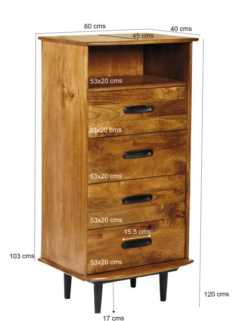 Elias Anrichte 60 cm 4 Schubladen 1 offenes Fach Mangoholz Retro